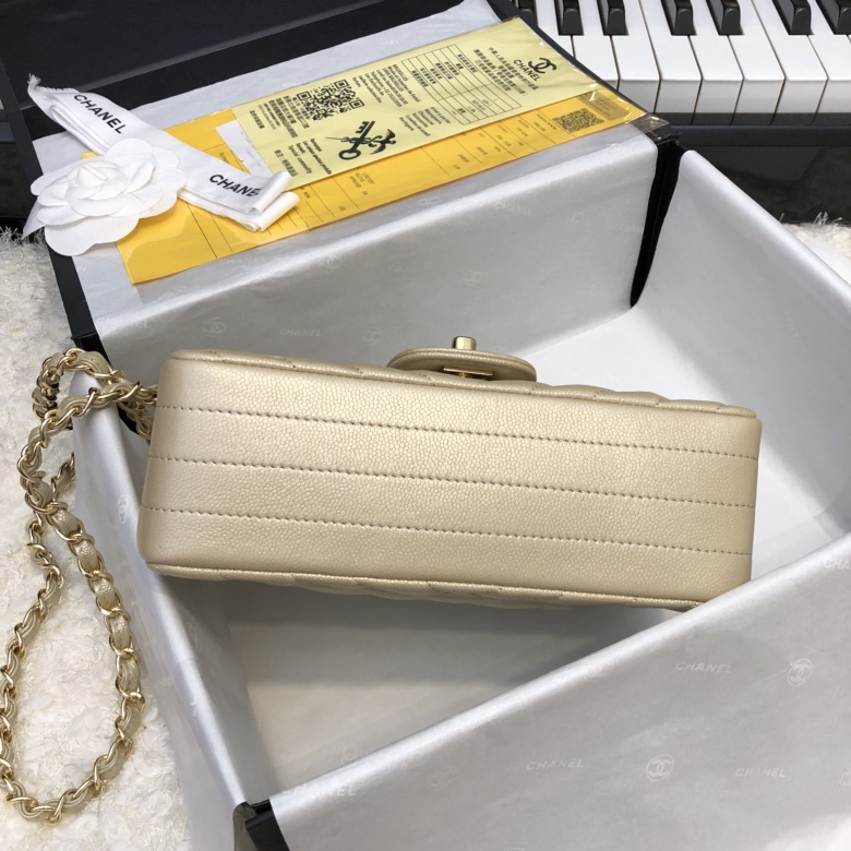 「#10256」Chanel 2018 Big V Beige Gold Chain Gold Buckle 20cm AS5500