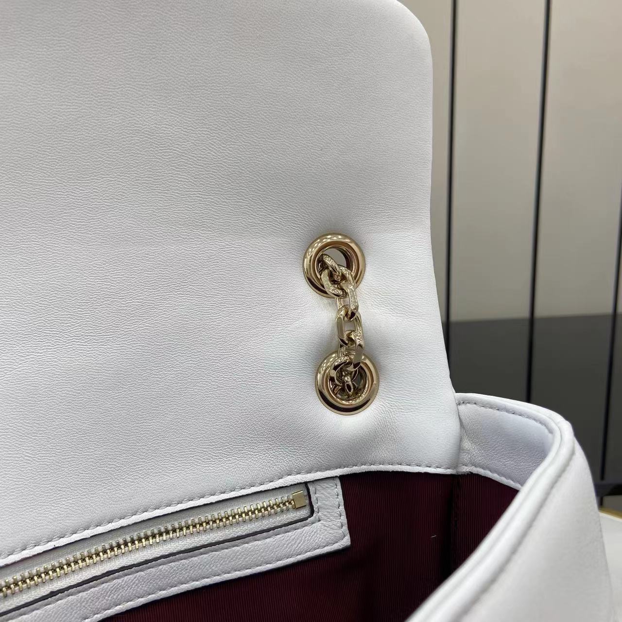 There is no need to say more about the metal of the shoulder strap.The pictures show the obvious difference.In addition, the leatherpart of the shoulder strap in the red circle is sewn in the same way as the original one instead of folding it.