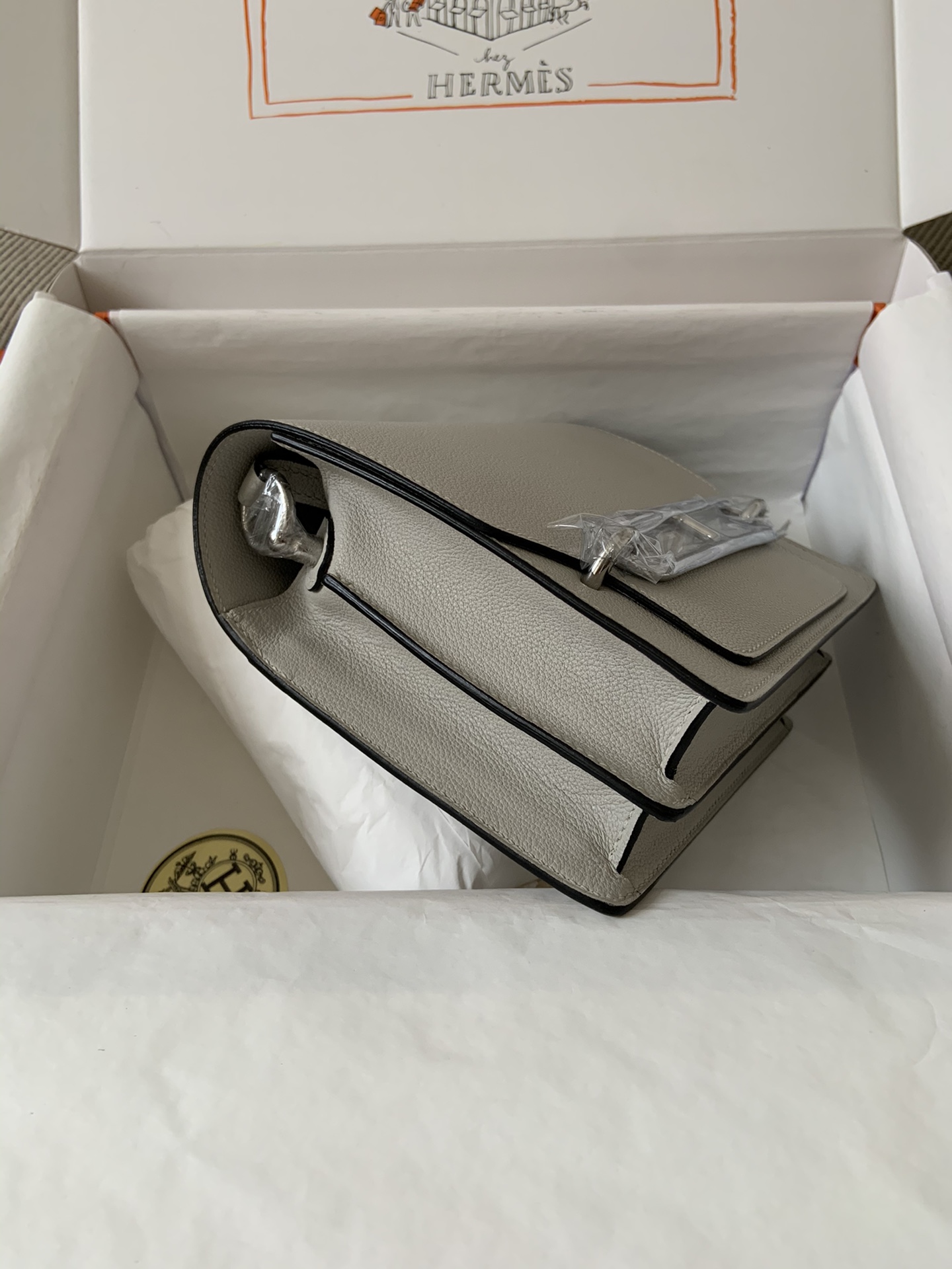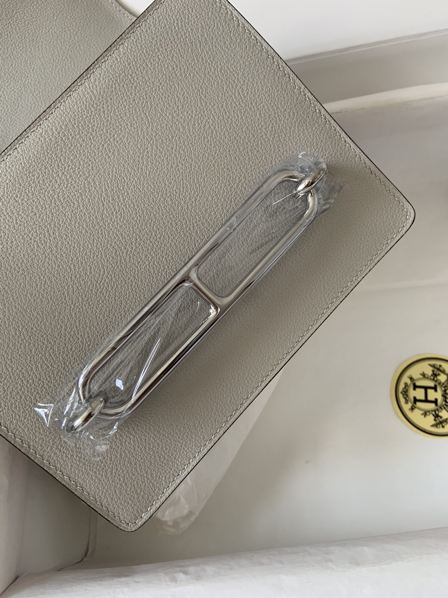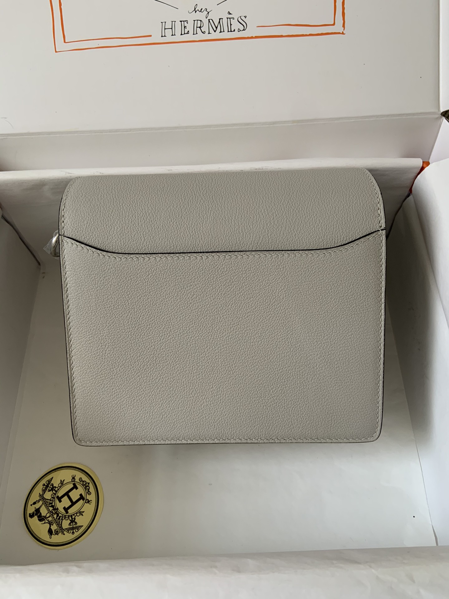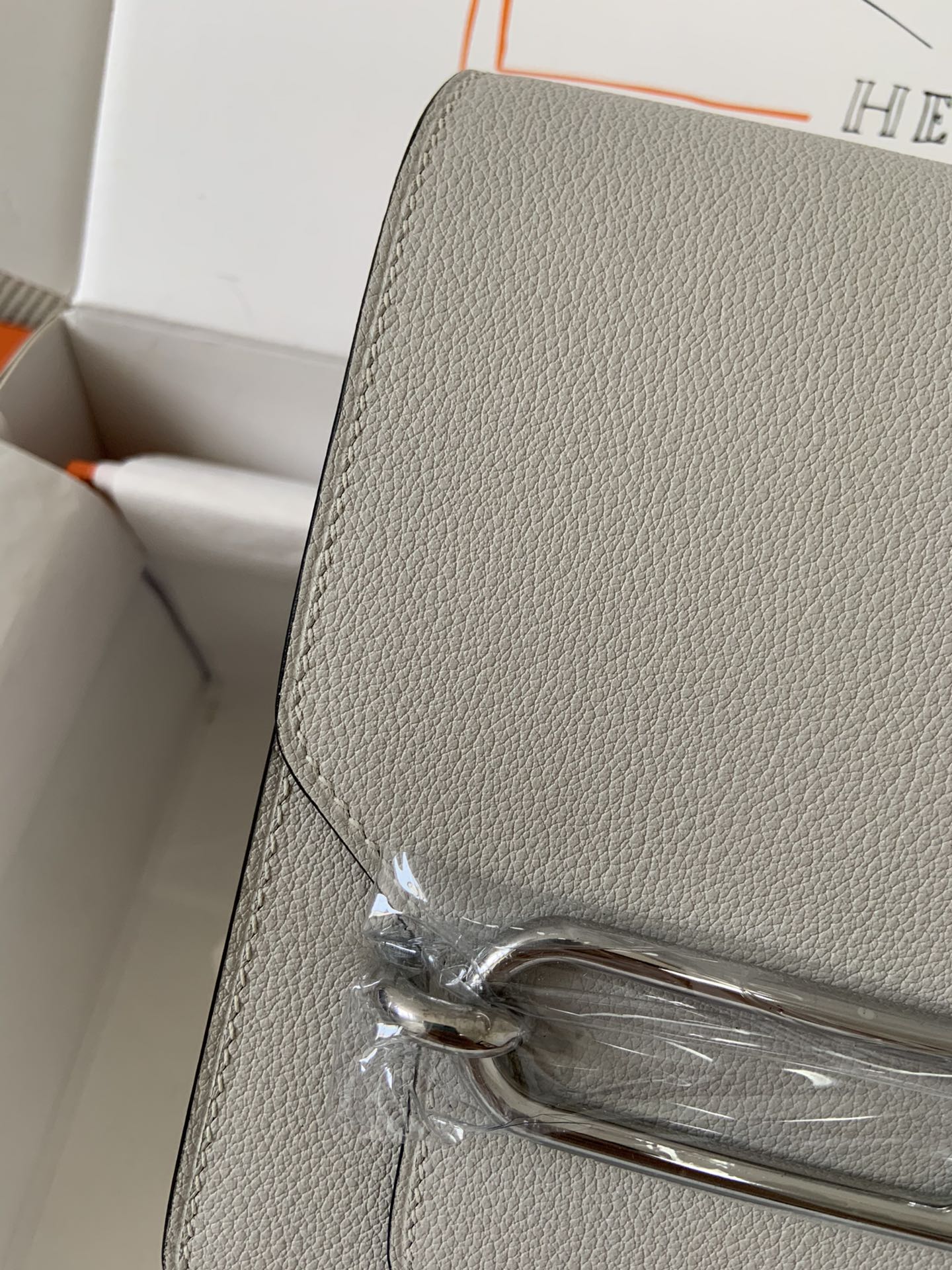 「#4036」Hermes Pig Nose Bag Pearl Grey Silver Buckle Roulis 19cm