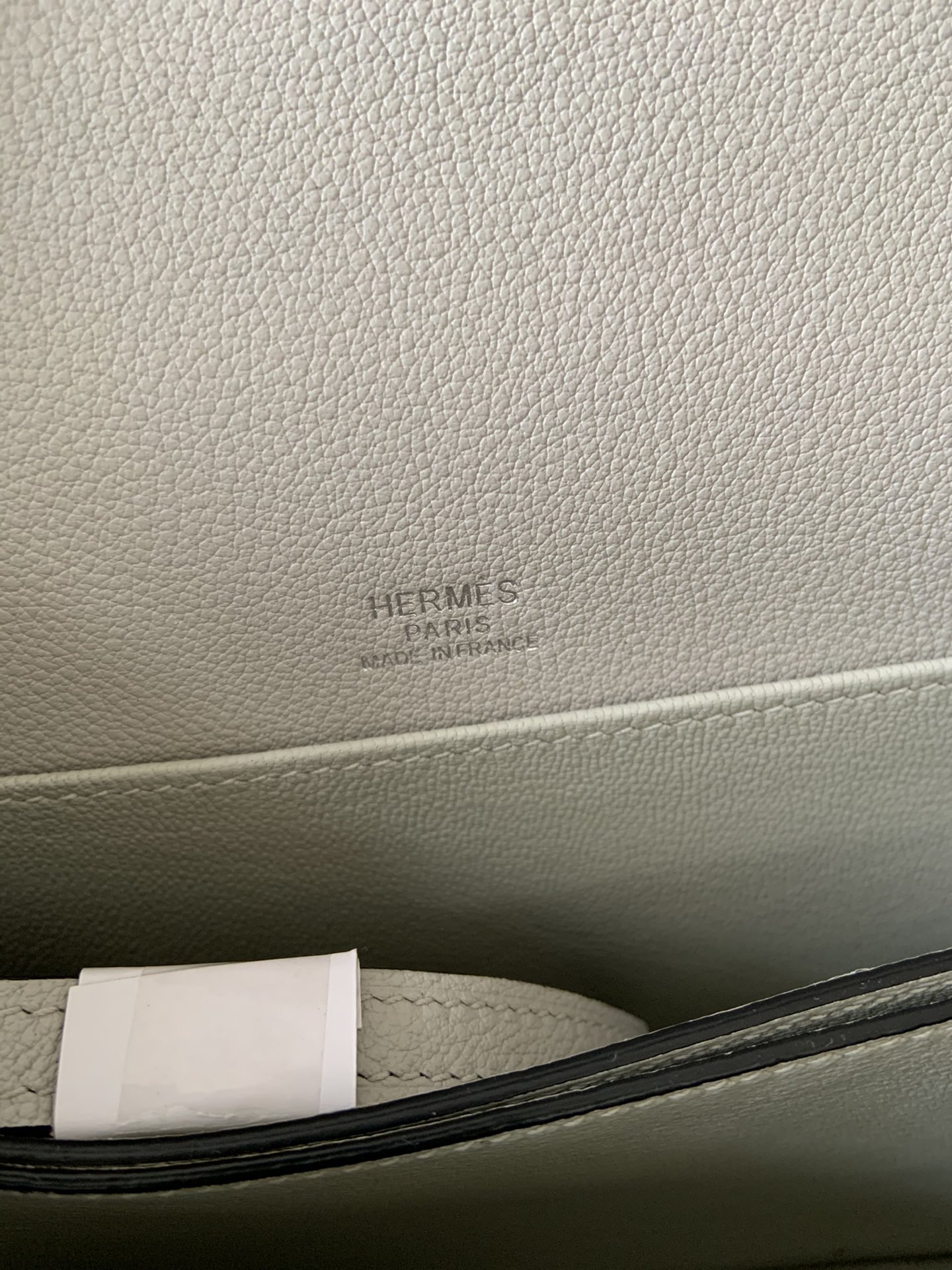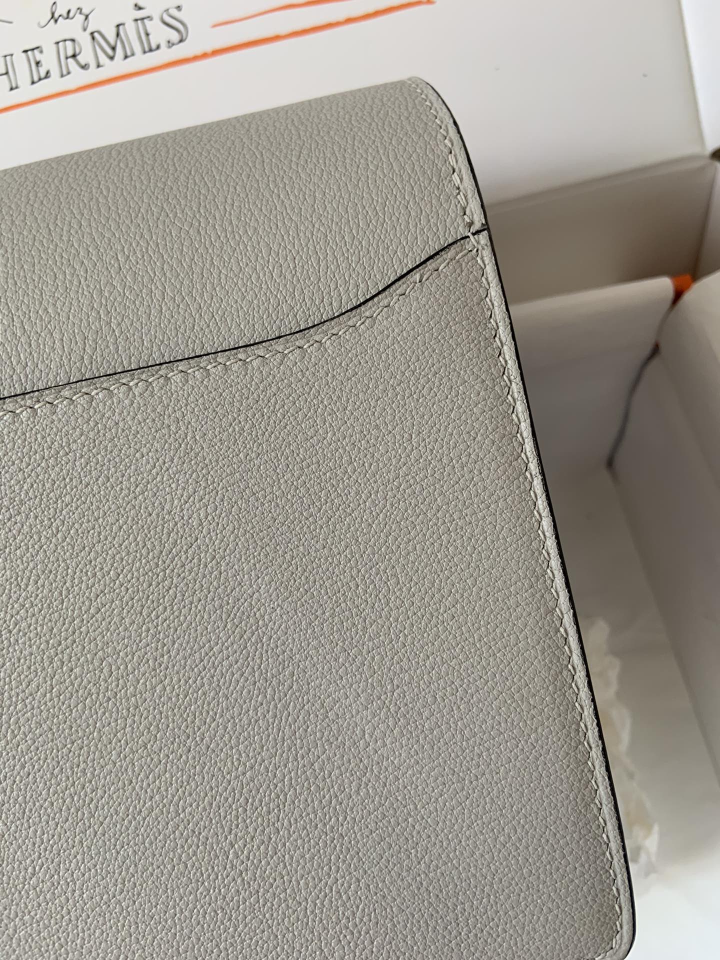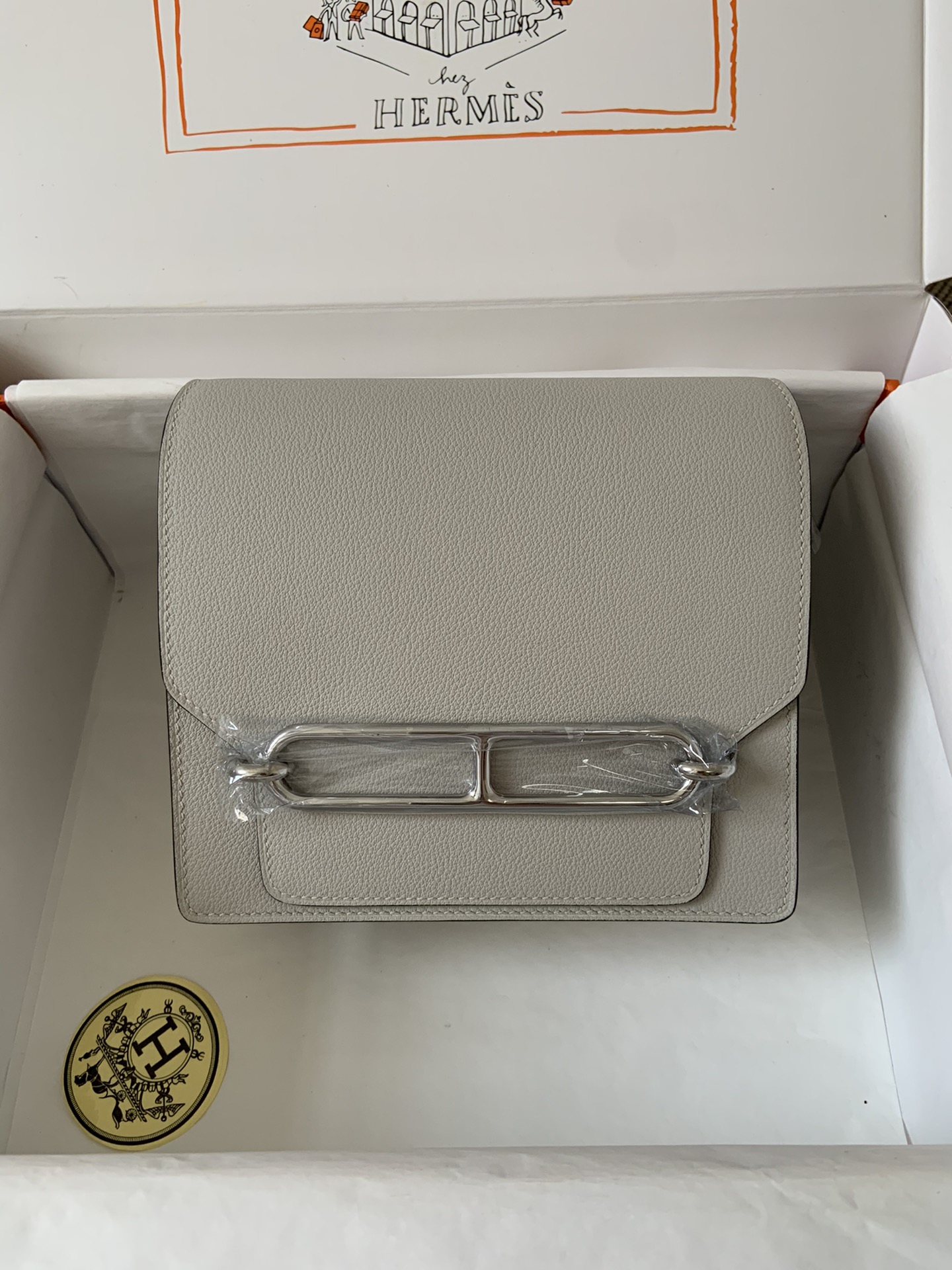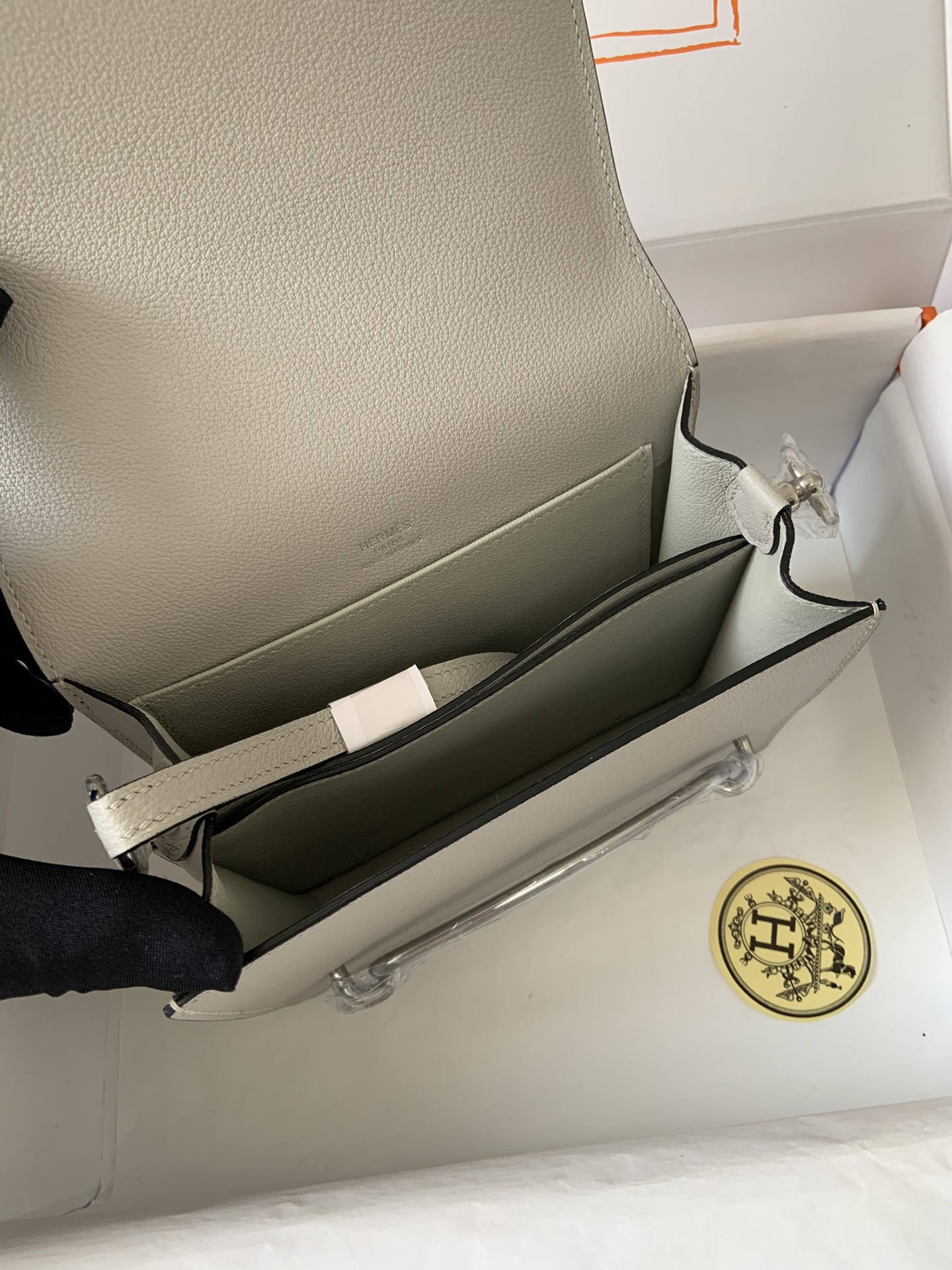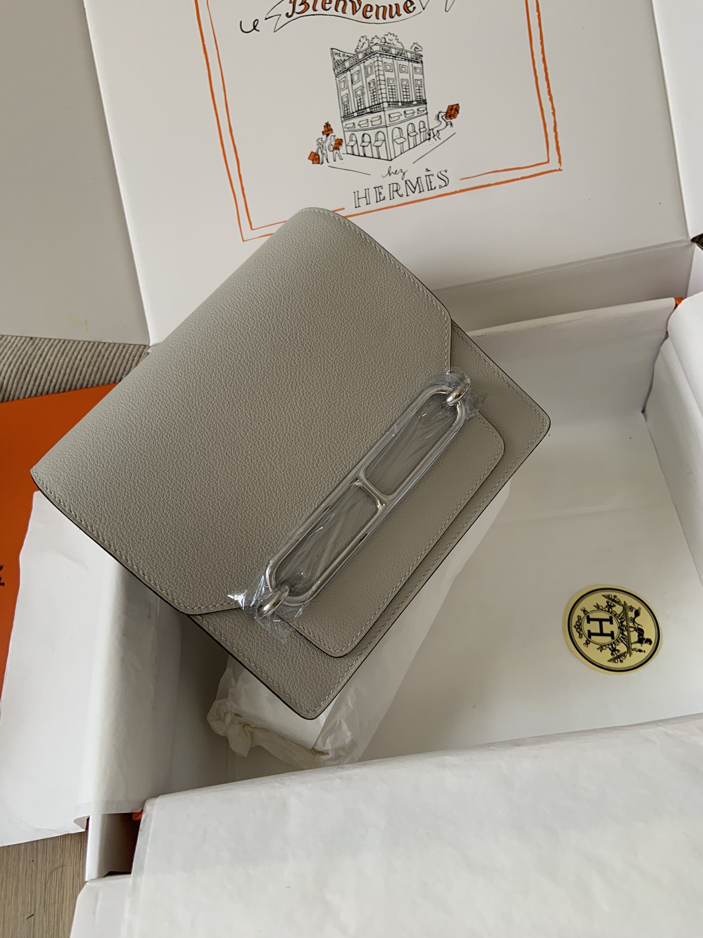 「#4036」Hermes Pig Nose Bag Pearl Grey Silver Buckle Roulis 19cm