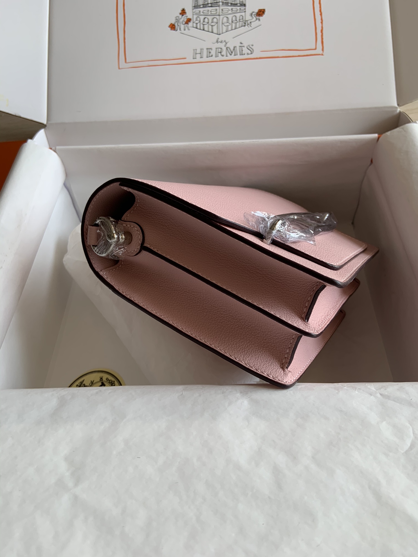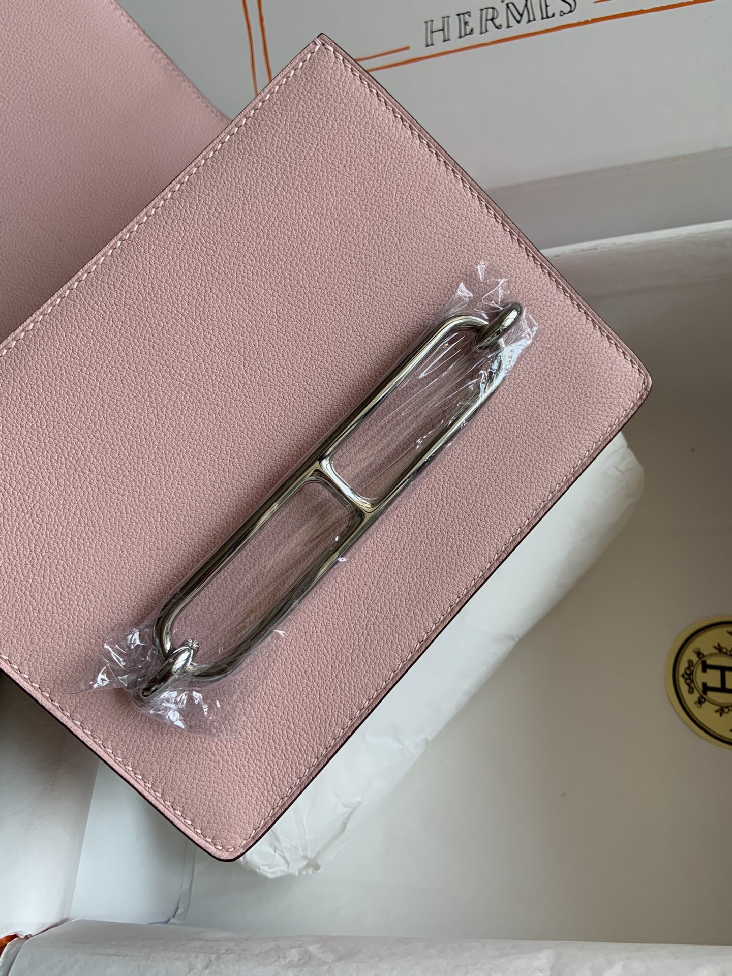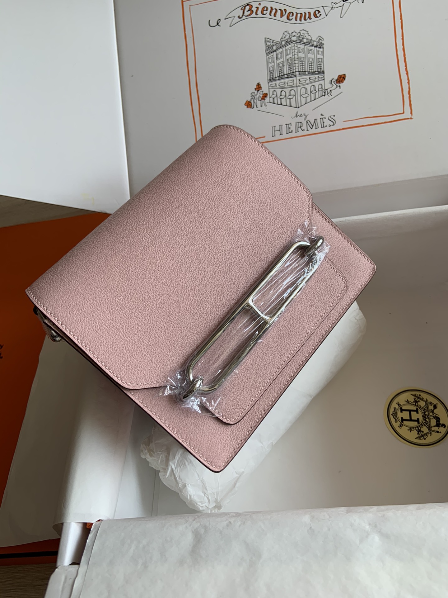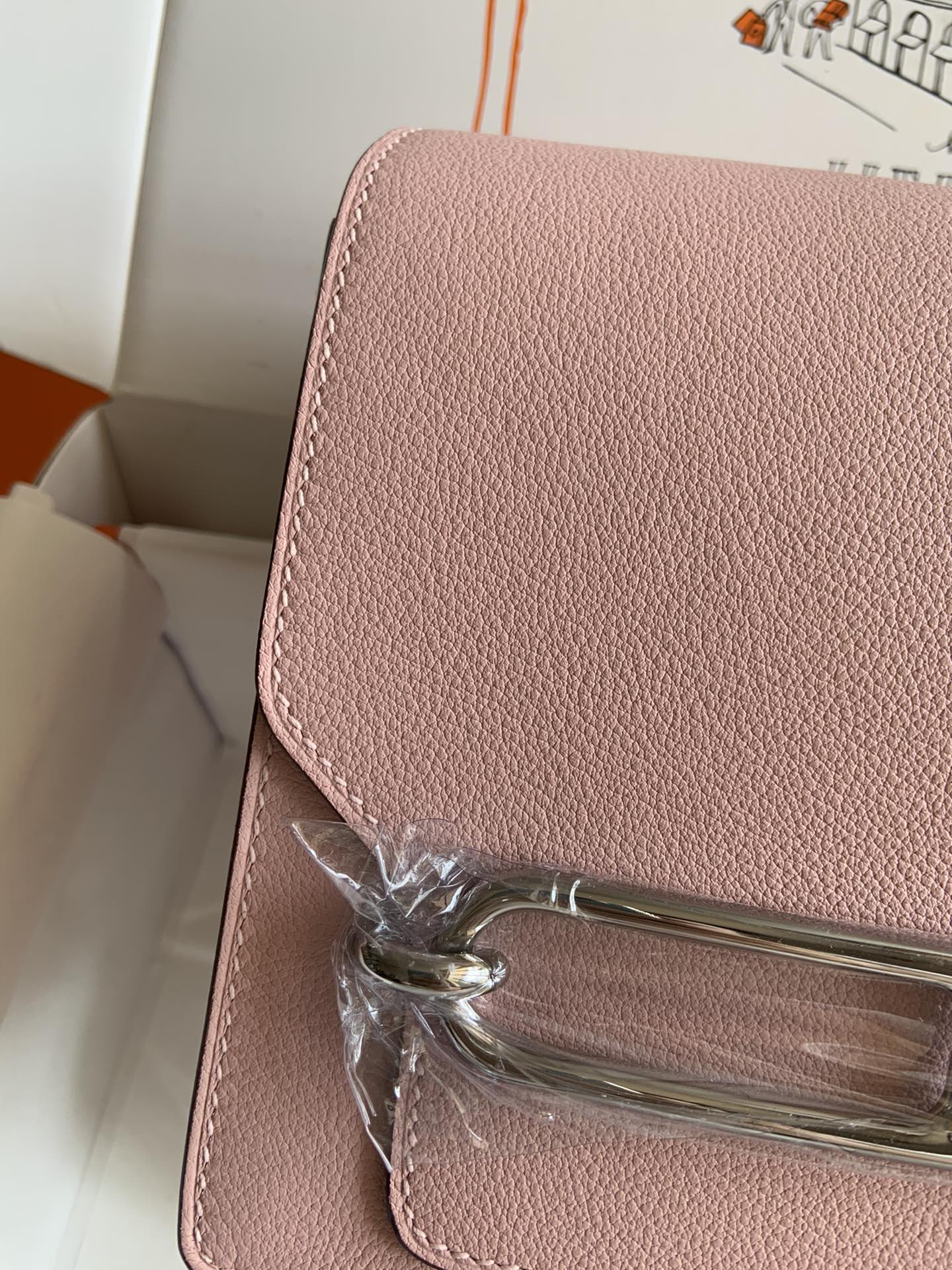 「#4040」Hermes Pig Nose Bag Roulis Girlish Pink Silver Buckle 19cm