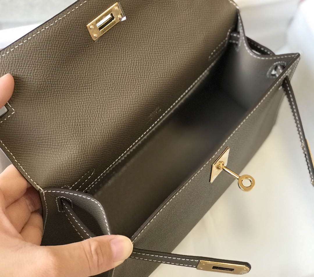 「#4085」 Hermès Elephant Grey Mini Kelly Bag No. 1, Gold Buckle 22*14*7cm