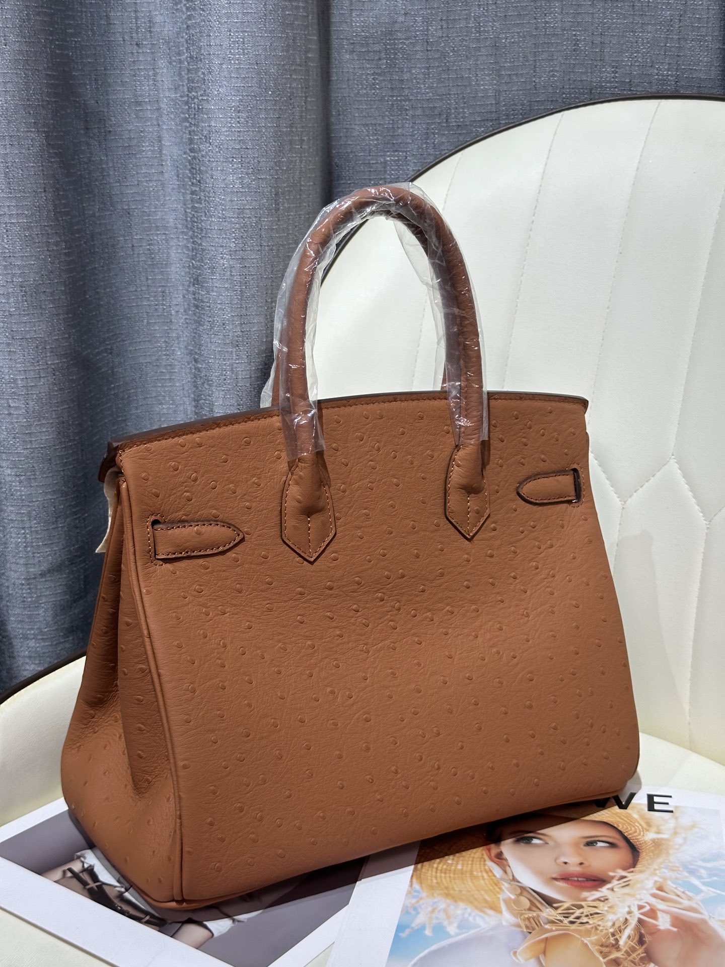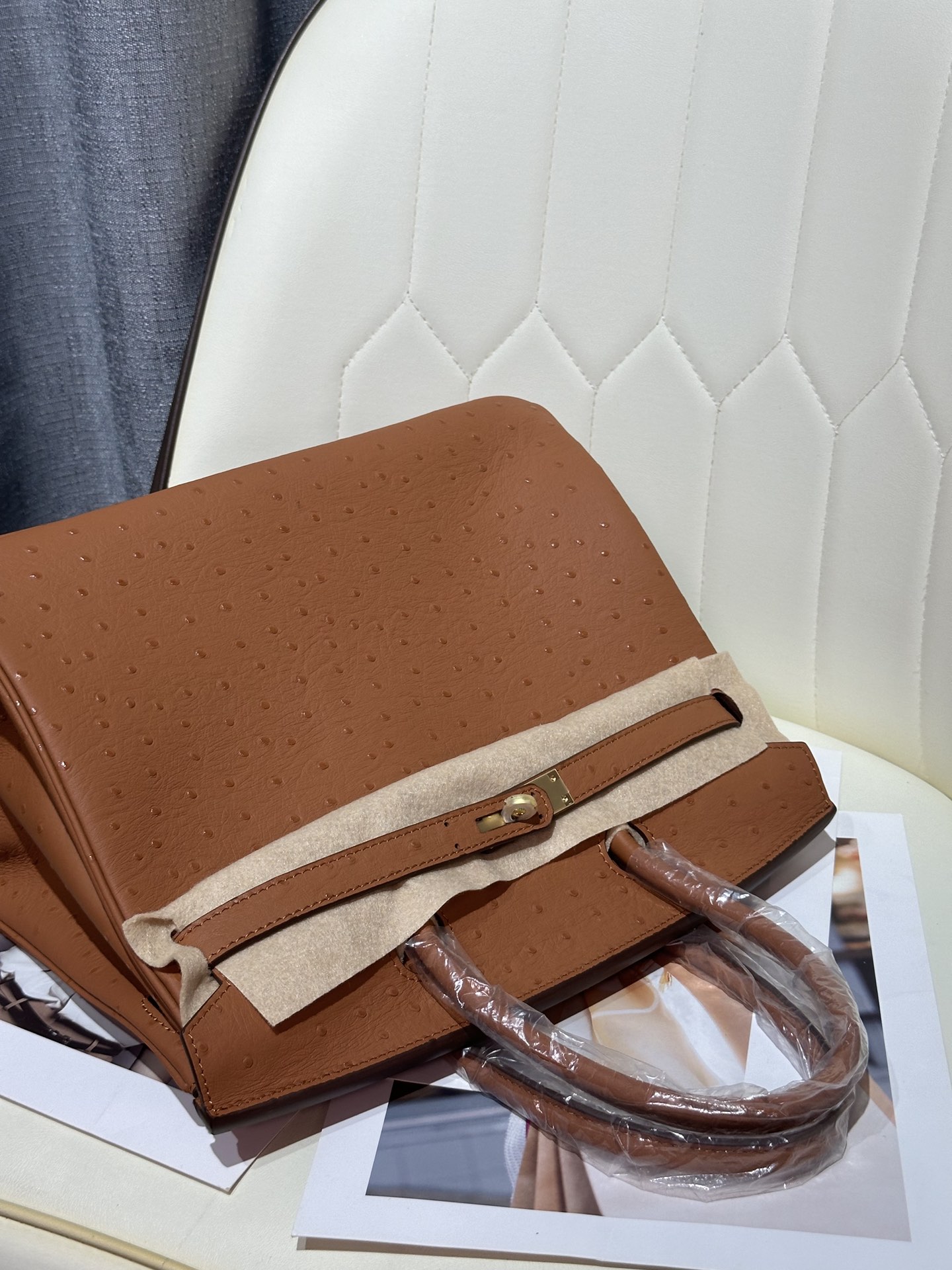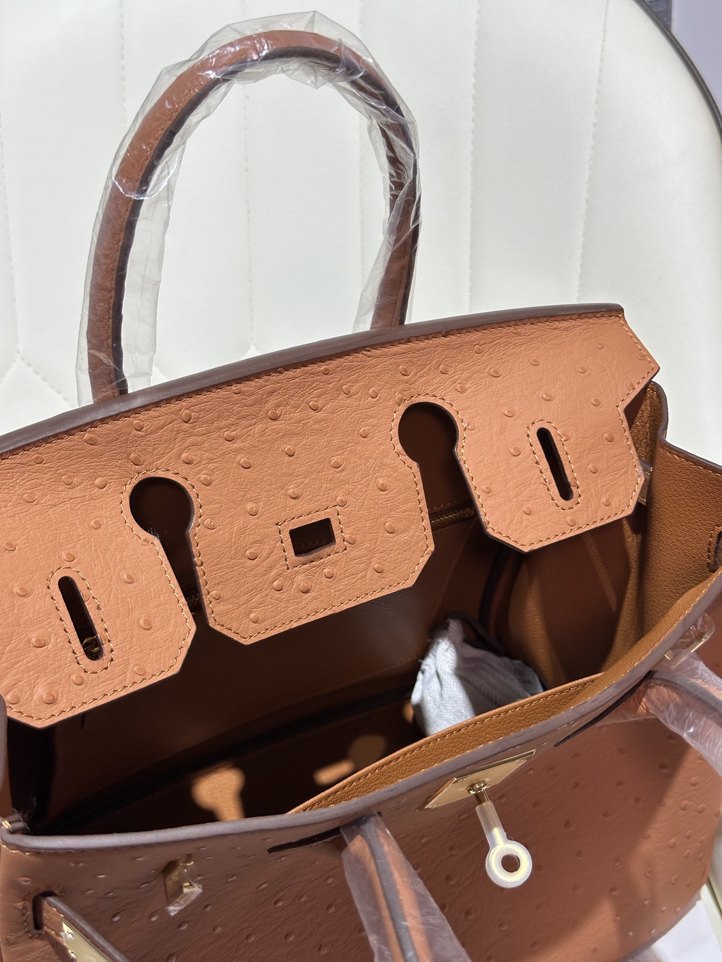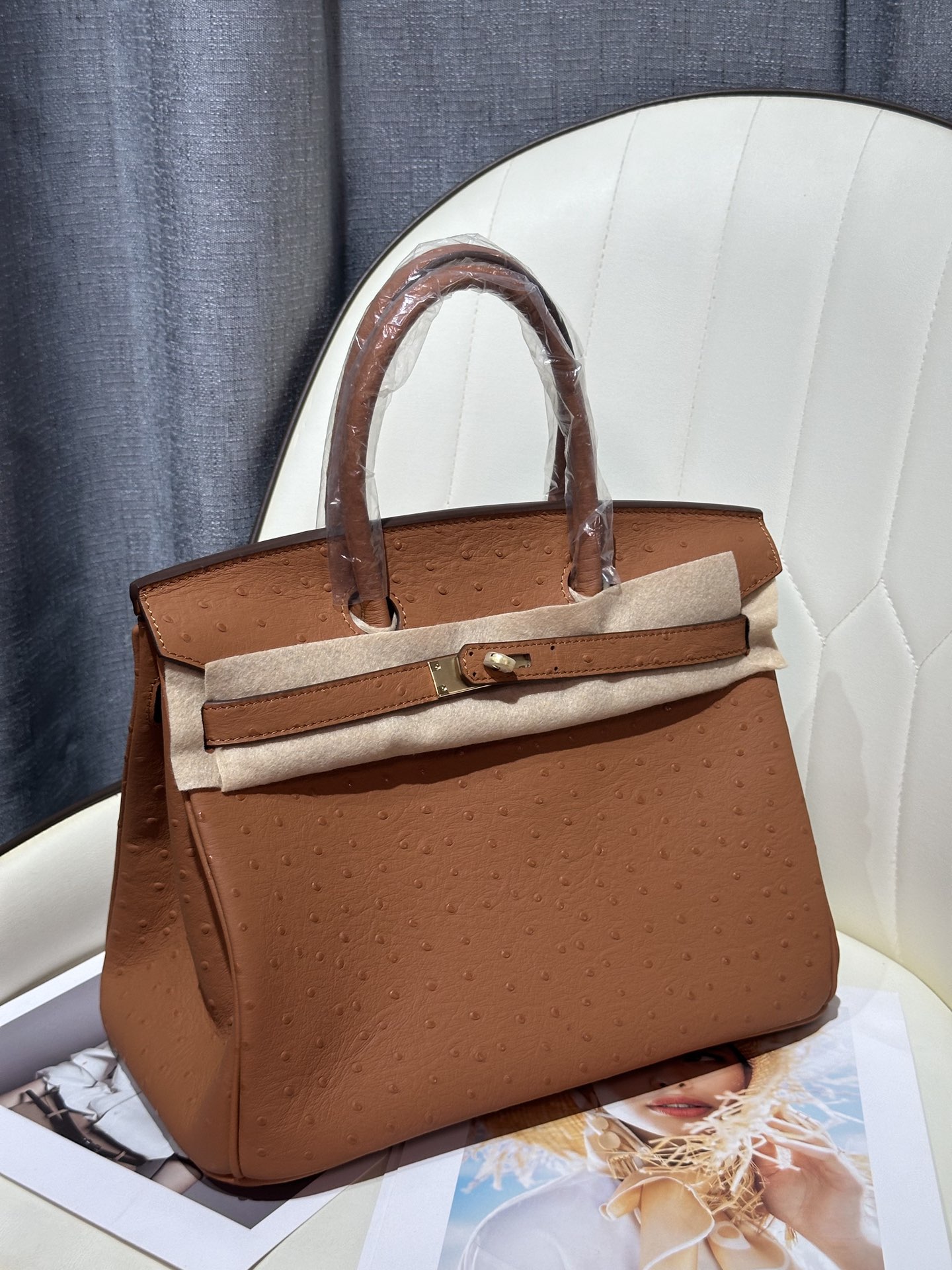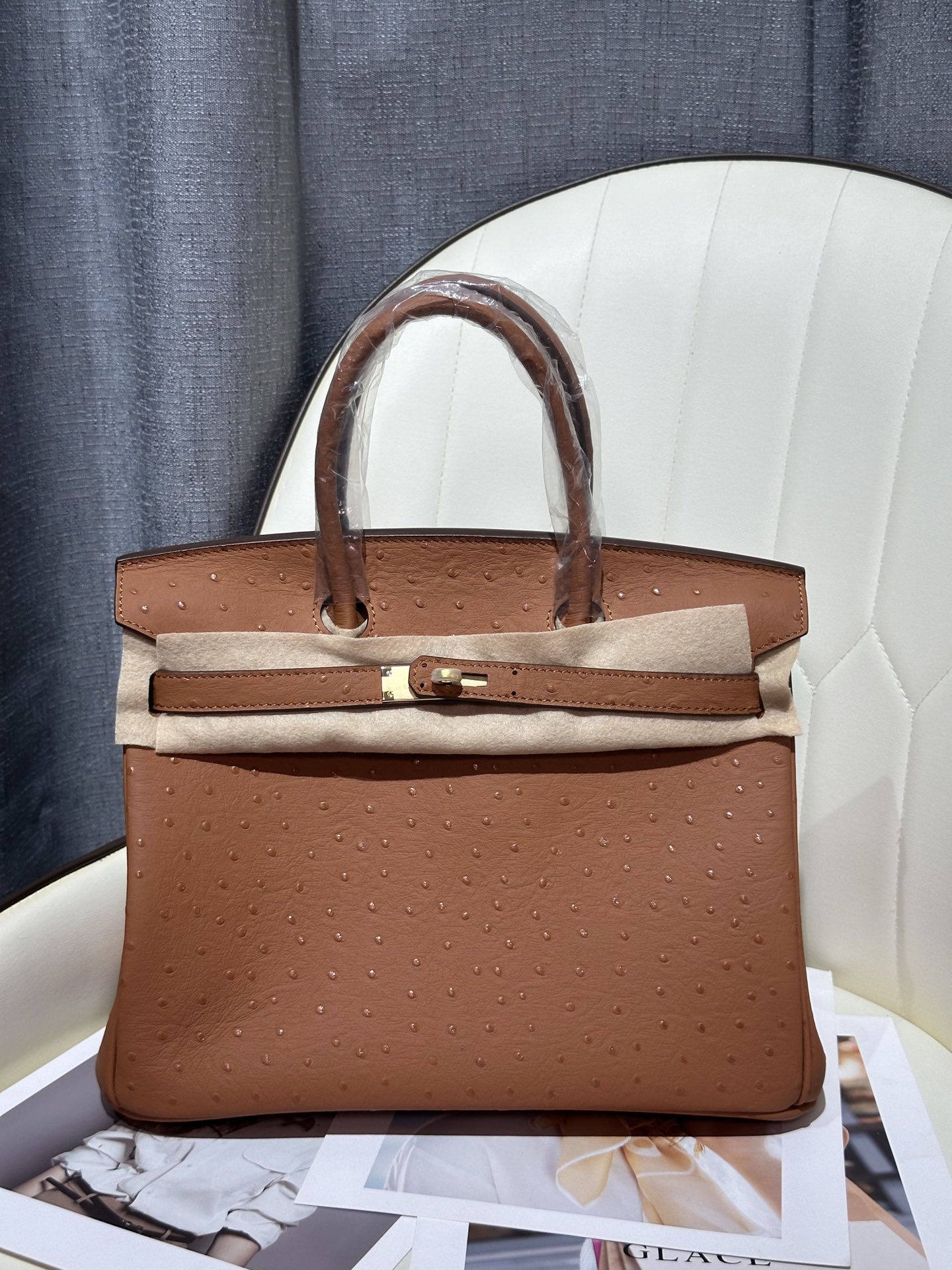 「#4160」Hermès Brown Ostrich Gold Buckle Birkin Bag 30cm