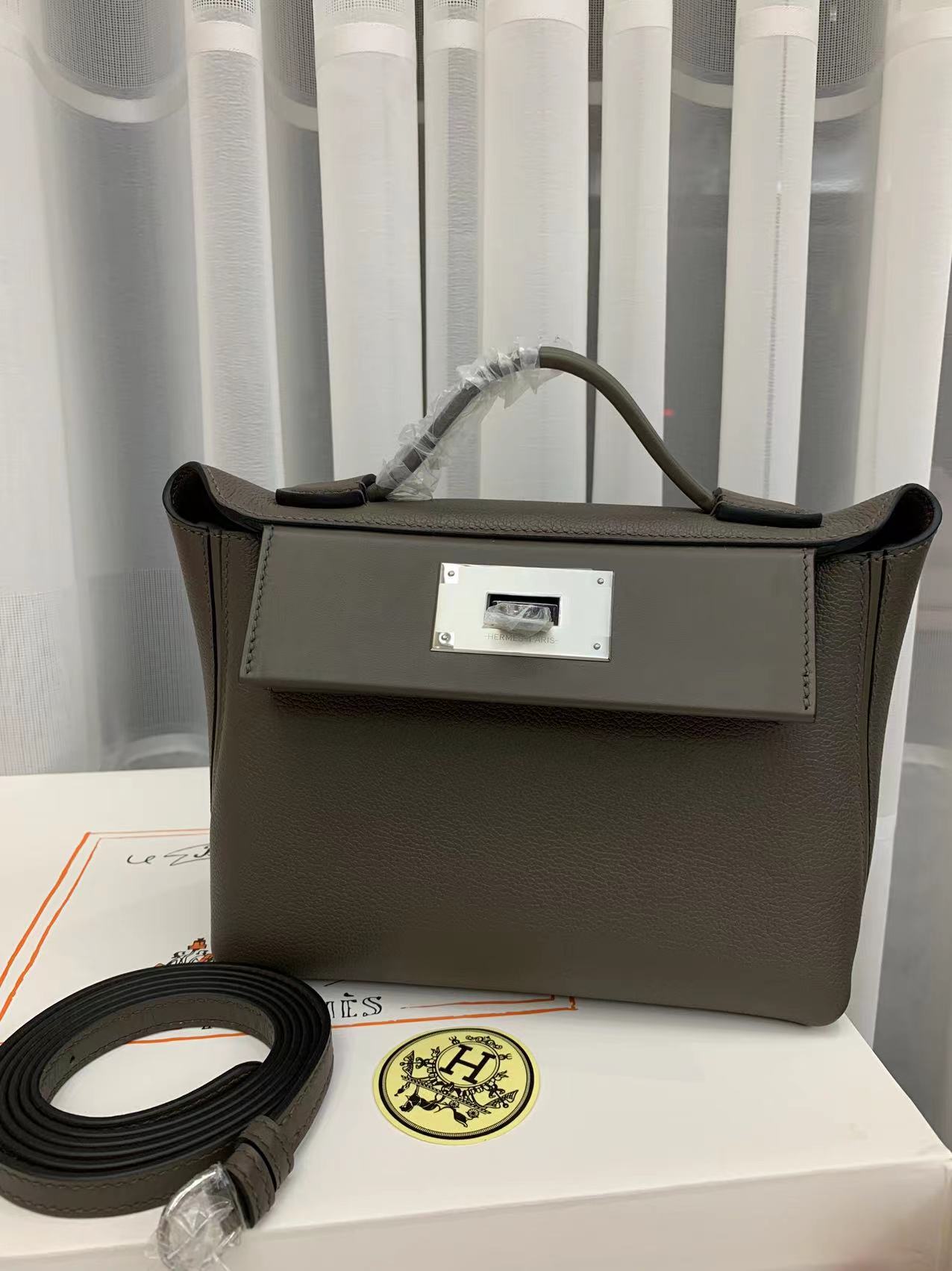 「#4251」 Hermes Pewter Gray Kelly Bag Y2424mini 21*16*12cm