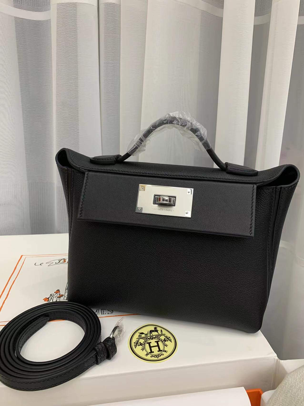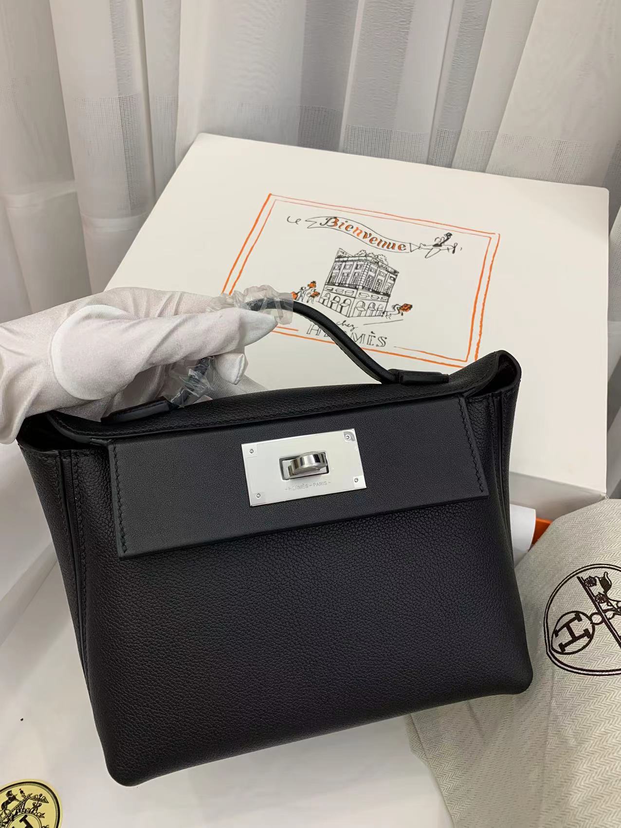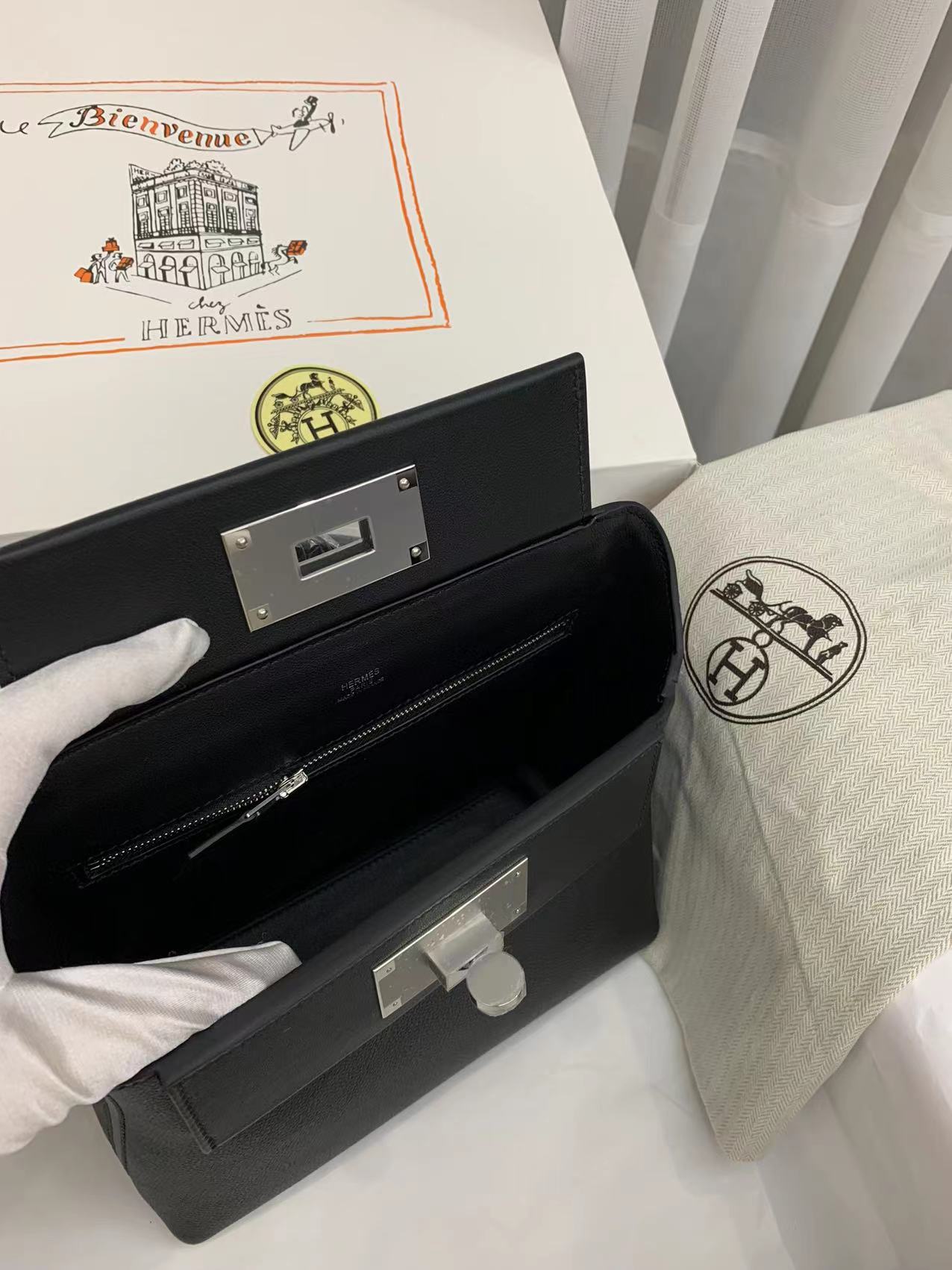 「#4256」Hermès Black Kelly Bag Silver Buckle Y2424mini 21*16*12cm