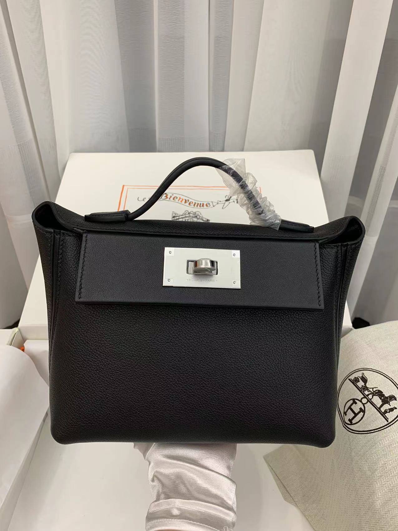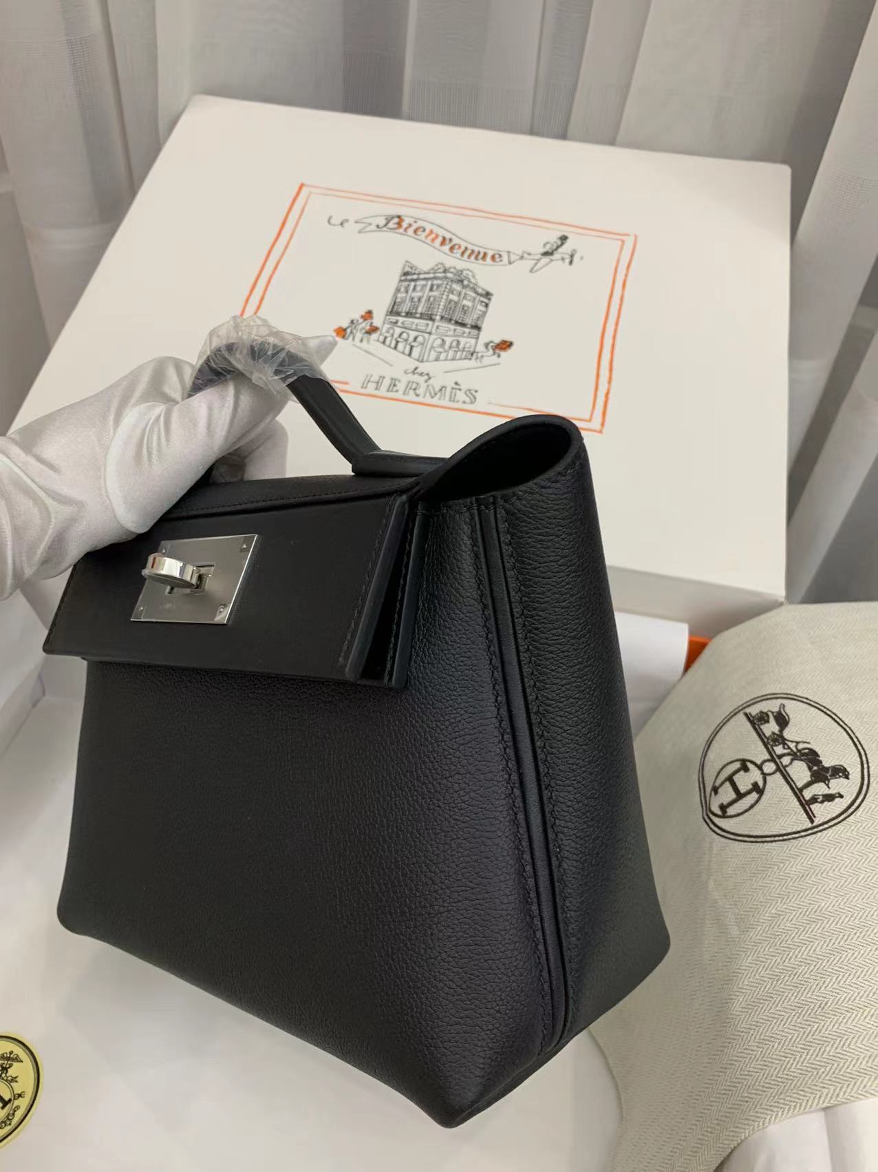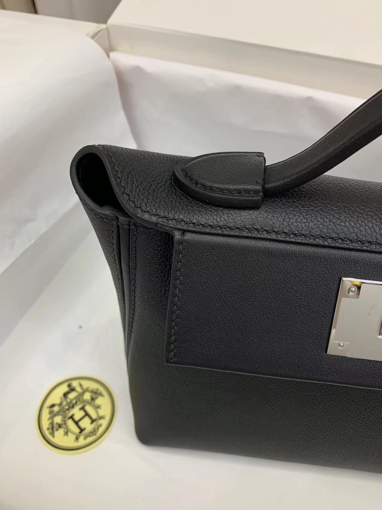 「#4256」Hermès Black Kelly Bag Silver Buckle Y2424mini 21*16*12cm