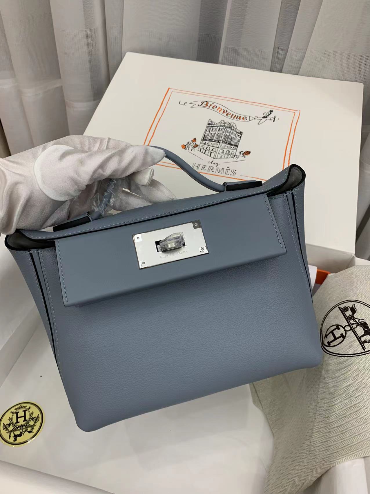 Tags:  「#4258」 Hermes Linen Blue Kelly Bag Silver Buckle Y2424mini 21*16*12cm4257Hermes