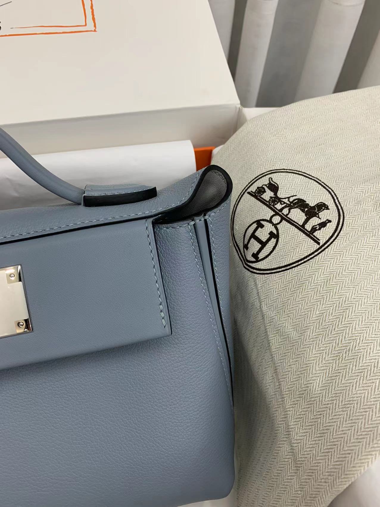 Reviews Over 「#4258」 Hermes Linen Blue Kelly Bag Silver Buckle Y2424mini 21*16*12cm