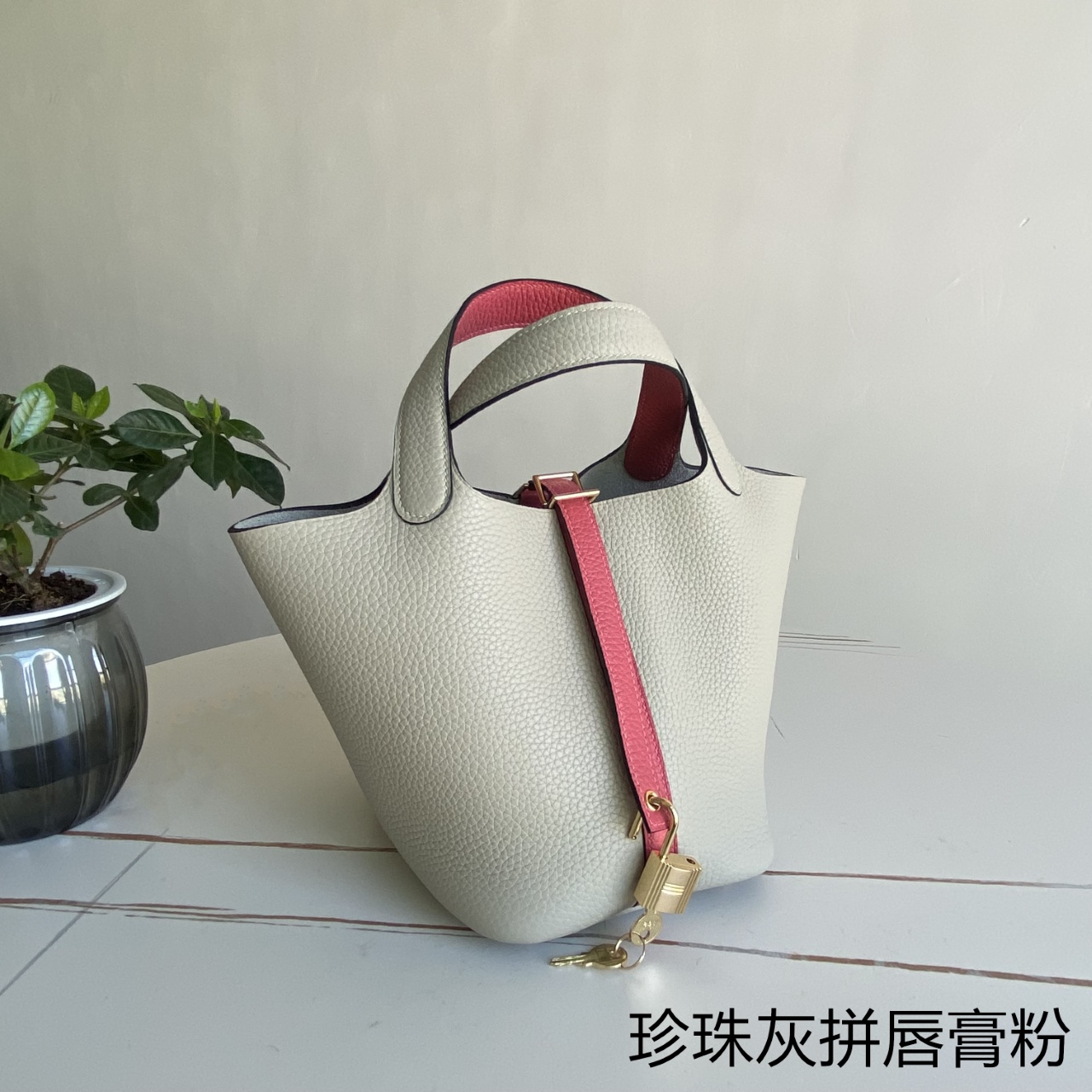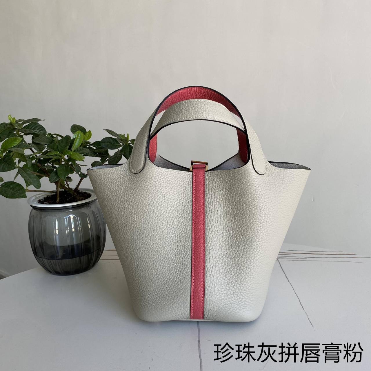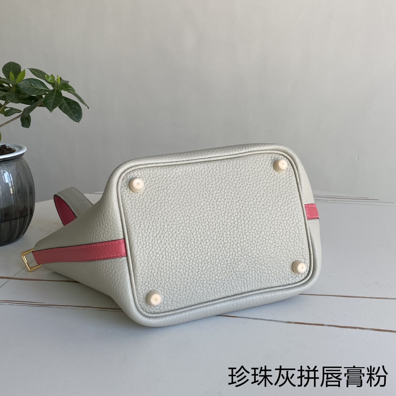 Tags:  「#4486」 Hermès Pearl Grey Lipstick Pink Gold Buckle 18cm Picotin Lock 18cm4485Hermes