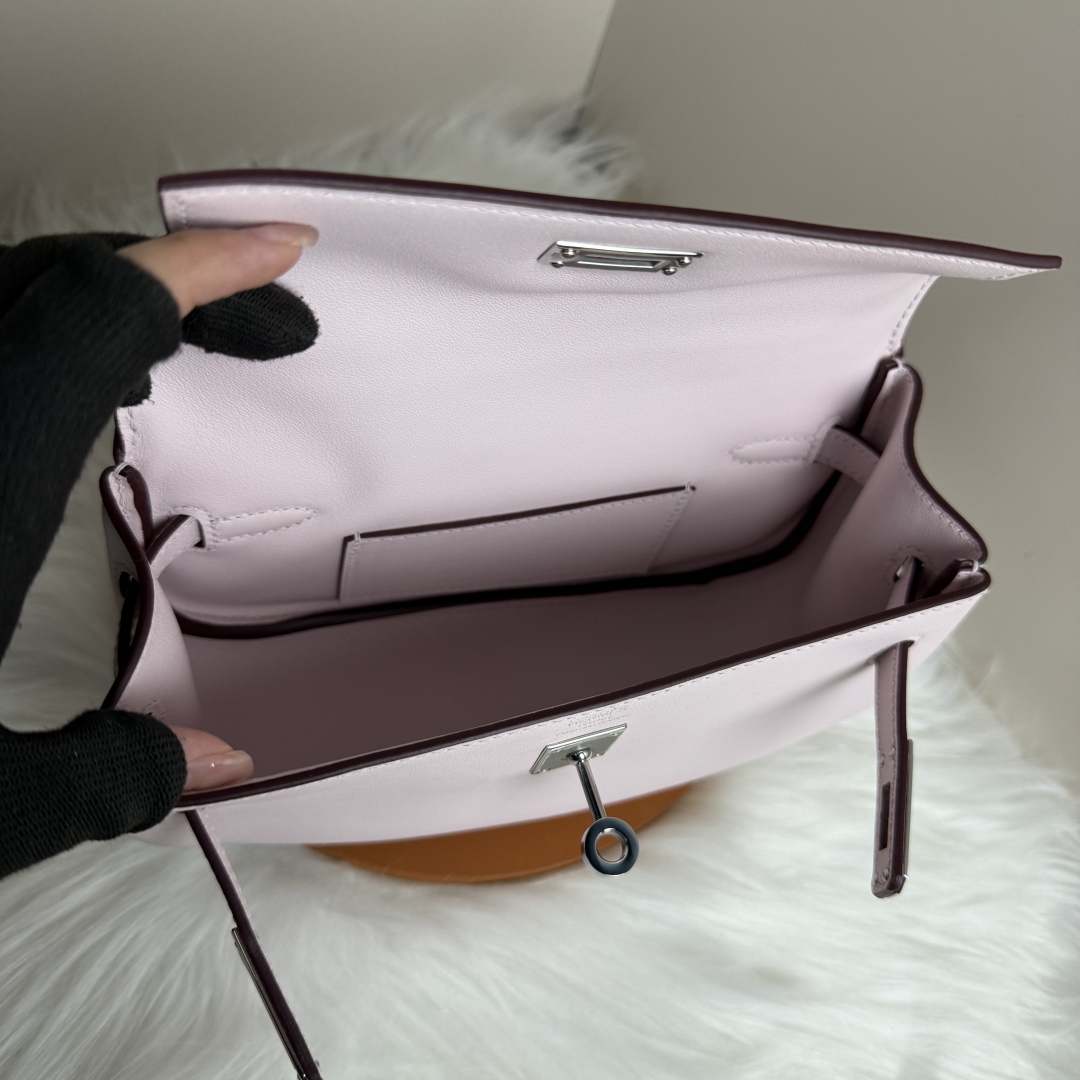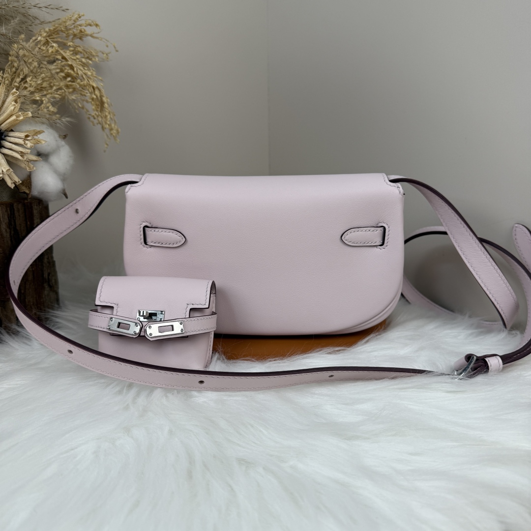 「#4510」 Hermes Moon Bag Fantasy Purple Silver Buckle Swift Leather Kelly Moove Large Bag 17cm Small Bag 7.5cm