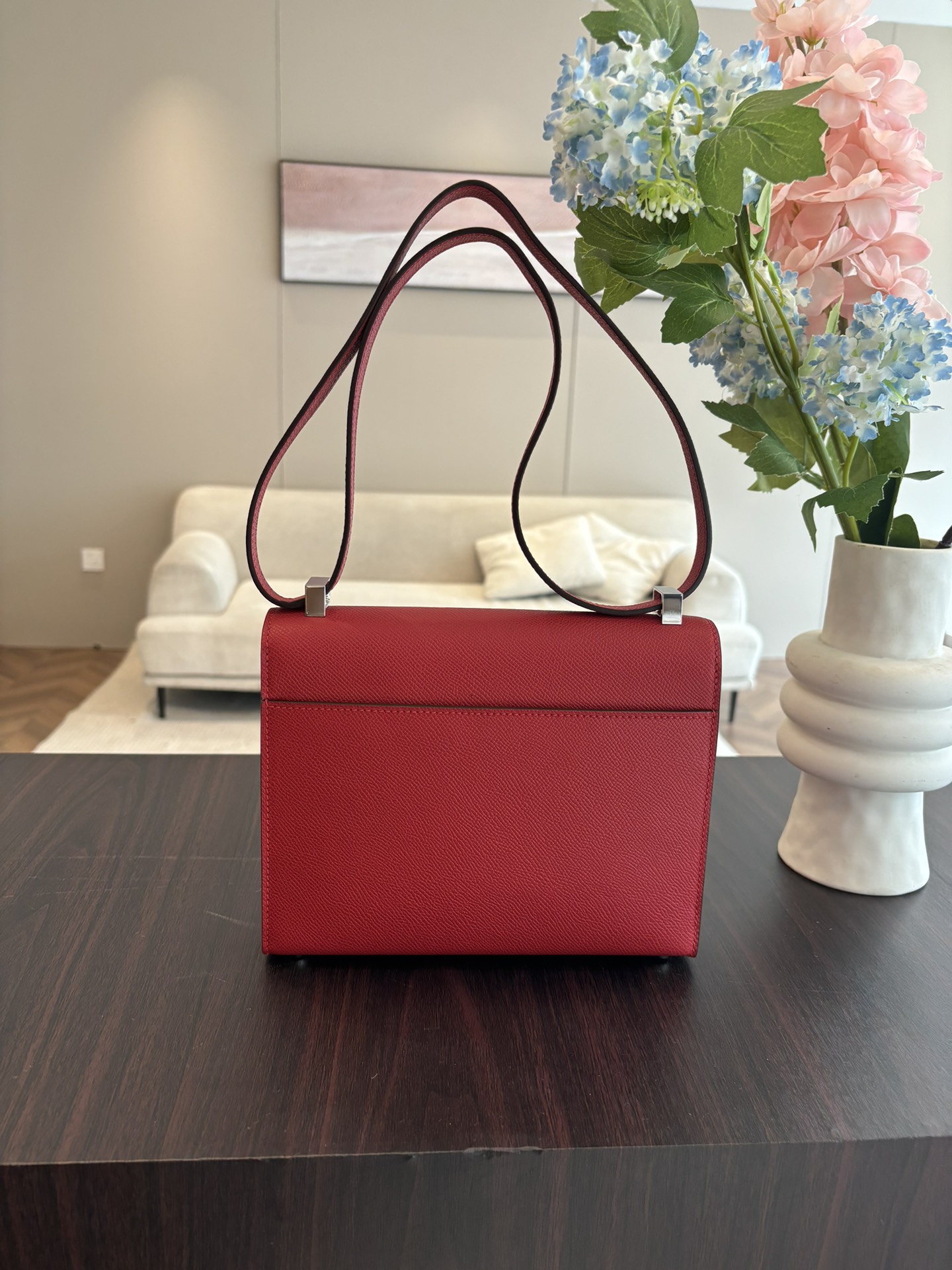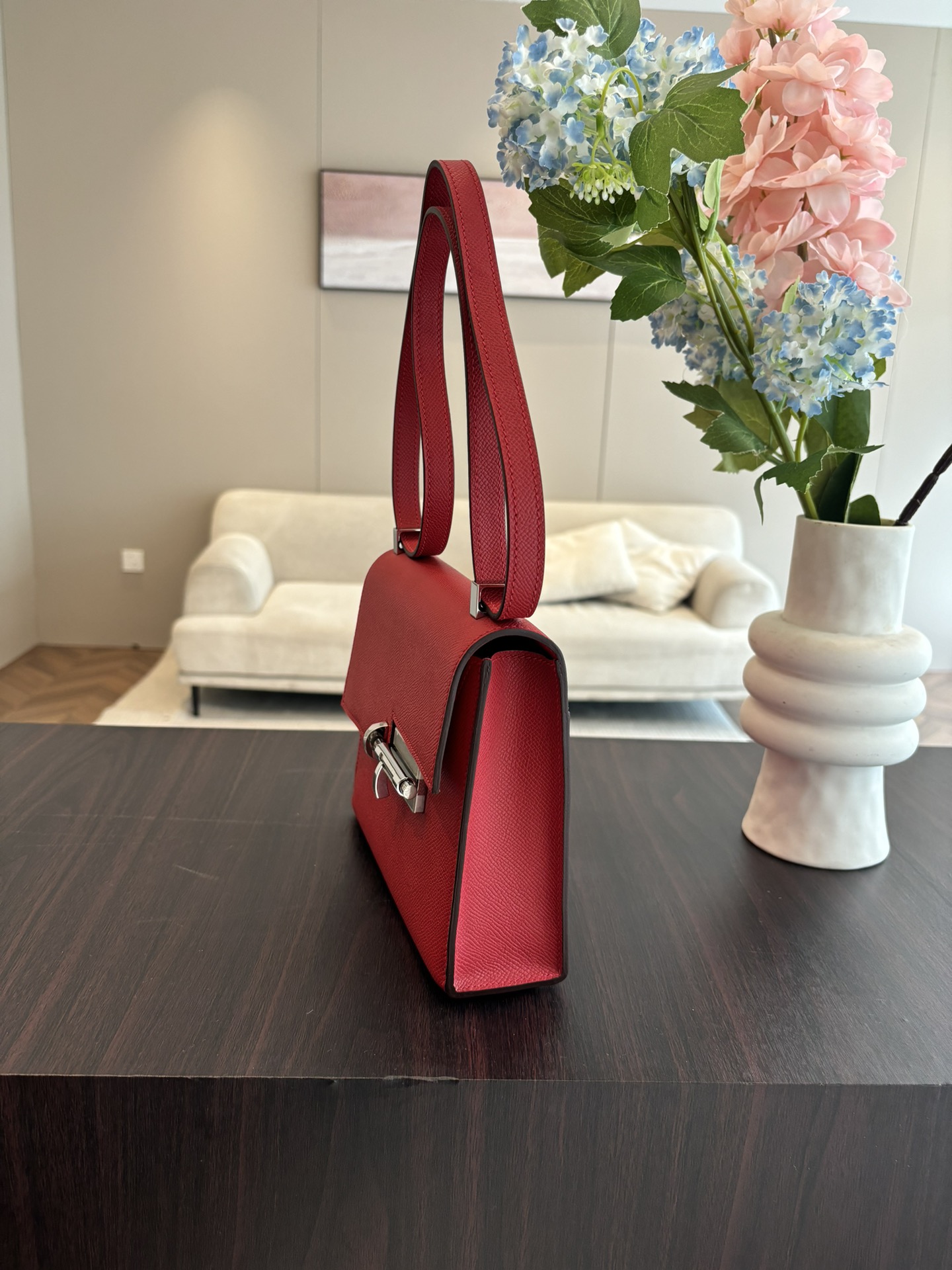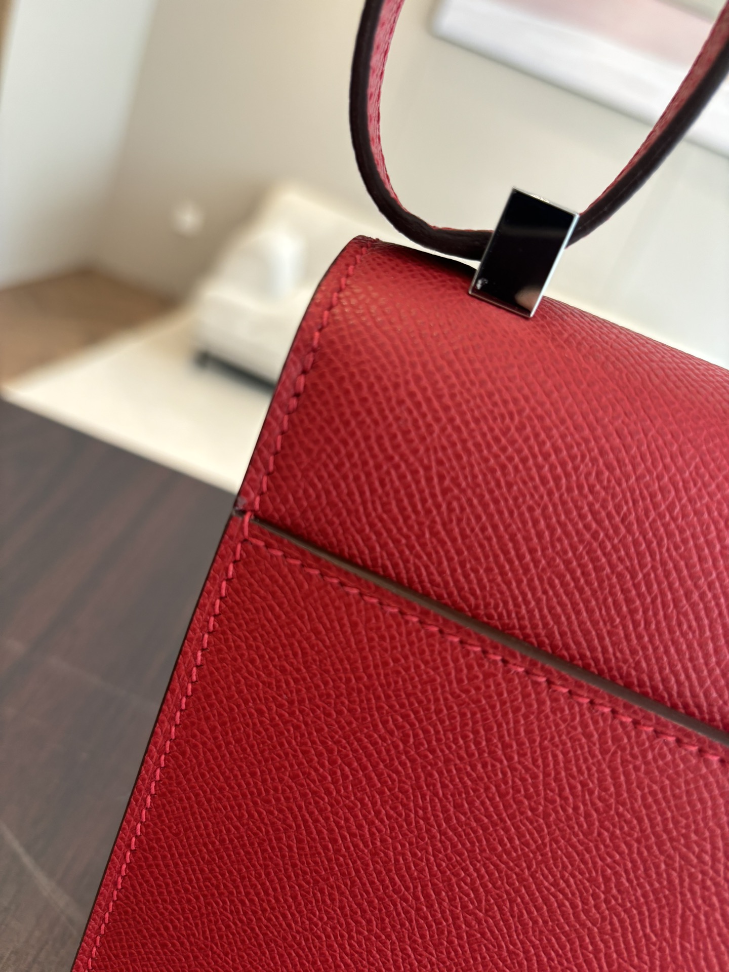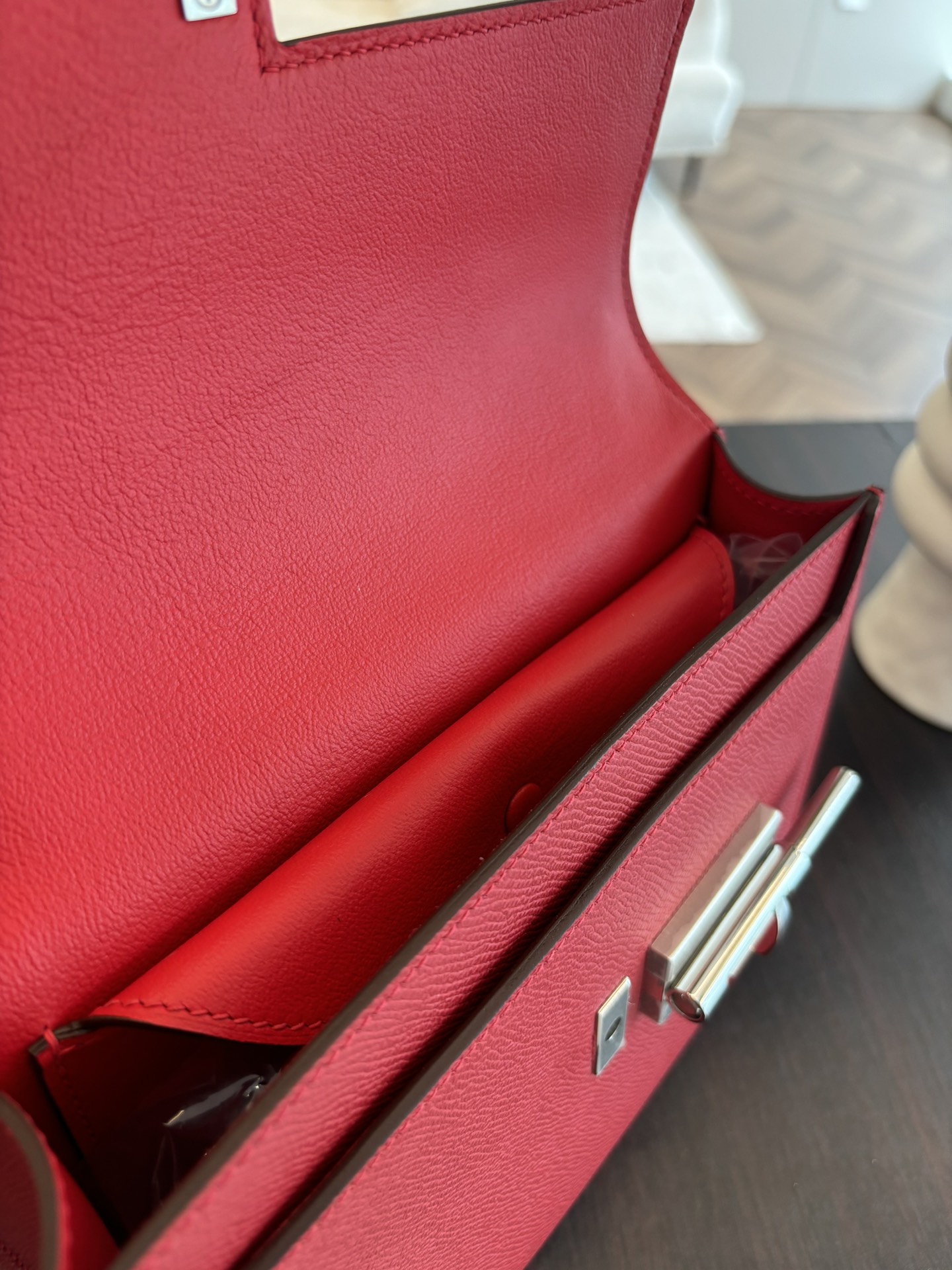 「#4528」 Hermes pistol bag red Verrou epsom leather stainless steel hardware semi-handmade wax thread sewing 21cm