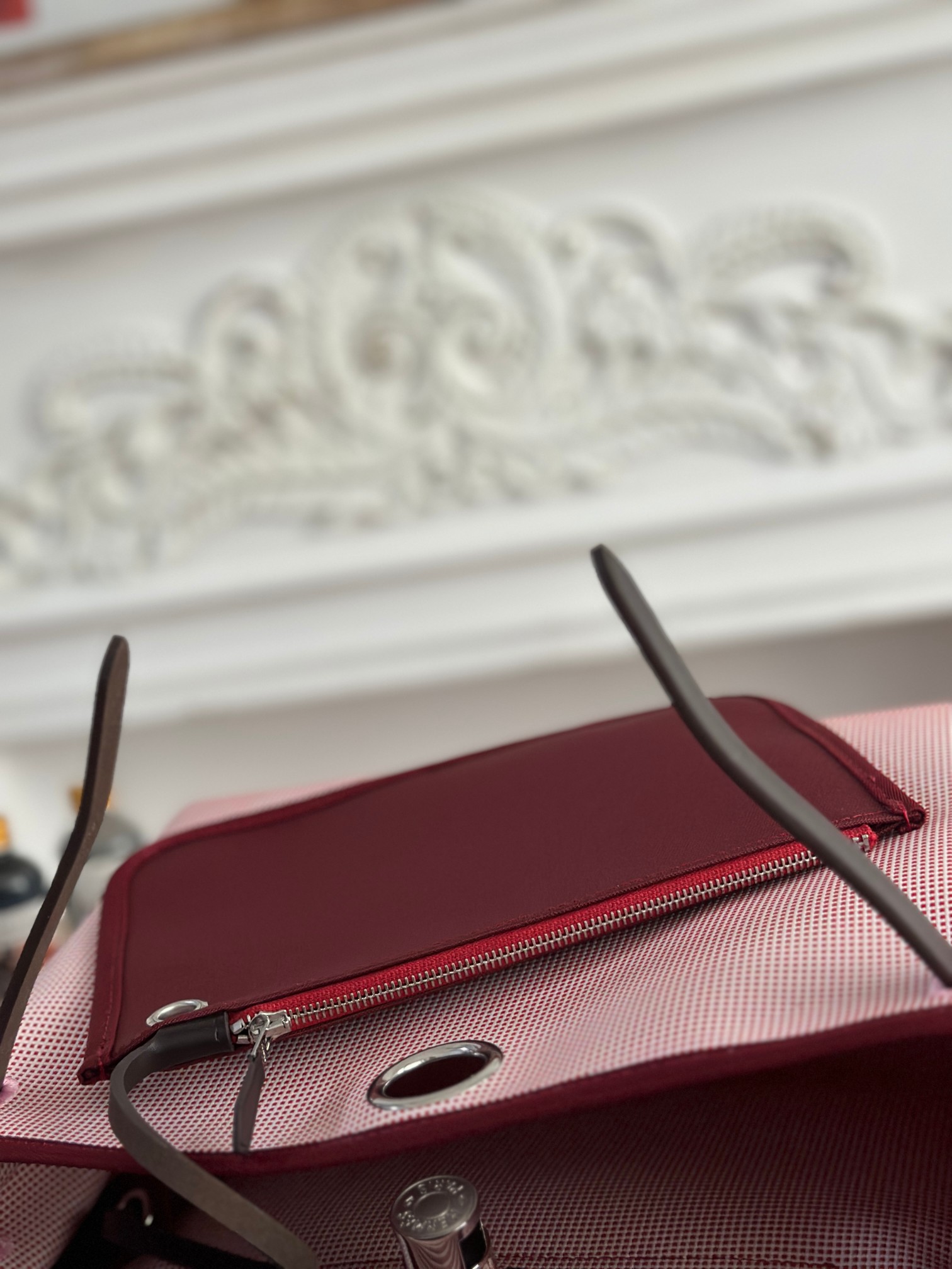 Regarding the zipper .we use thesame zipper as the original one.You can see the obvious difference fom the picture. And the inner canuas is customized with the same color as original one. it is per fect both in feel and visually.