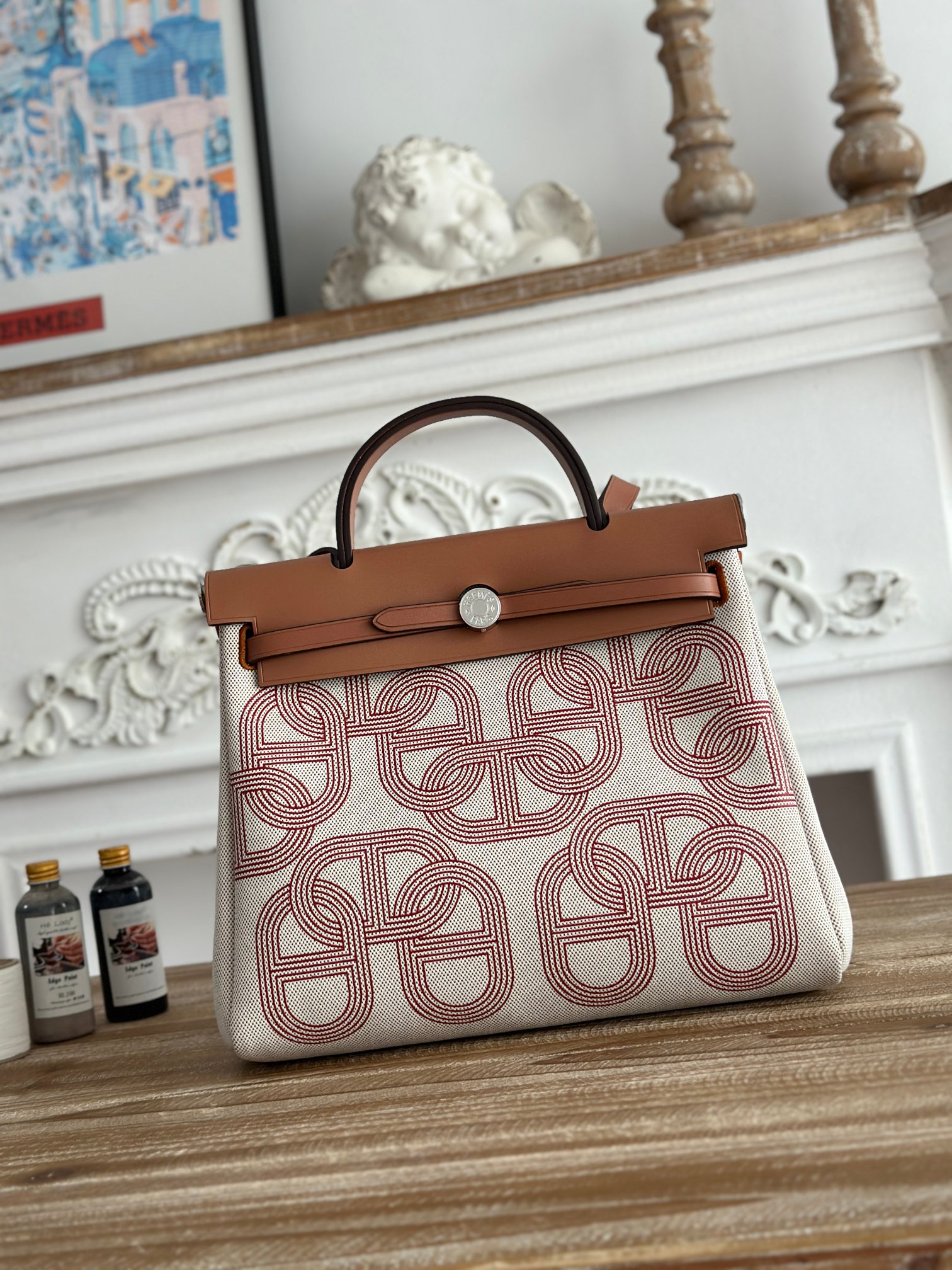 「#4635」Hermes Mini Patchwork Silver Buckle Hermes Herbag 30cm