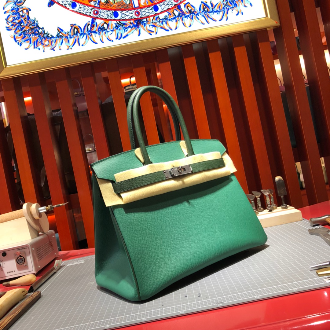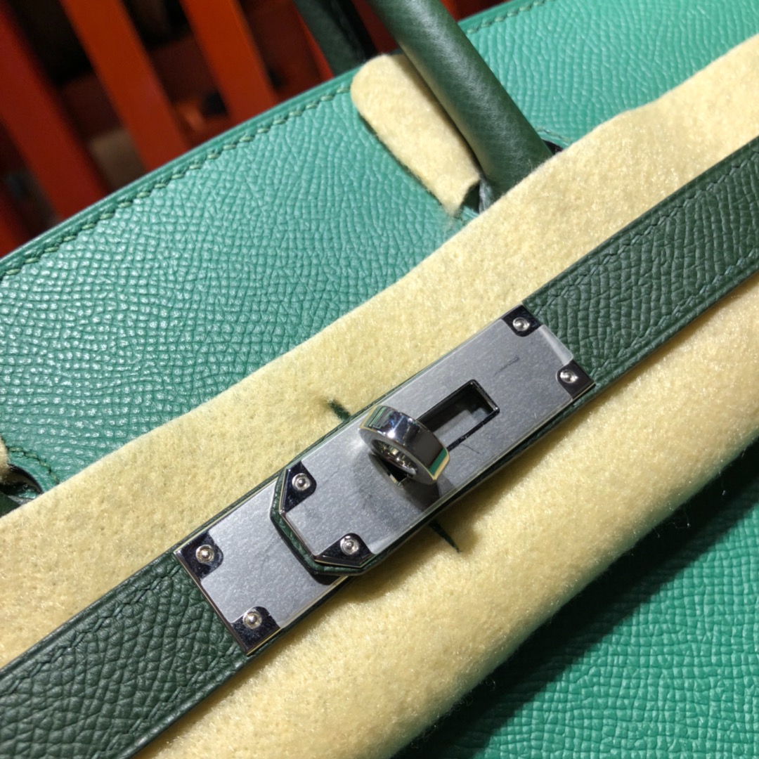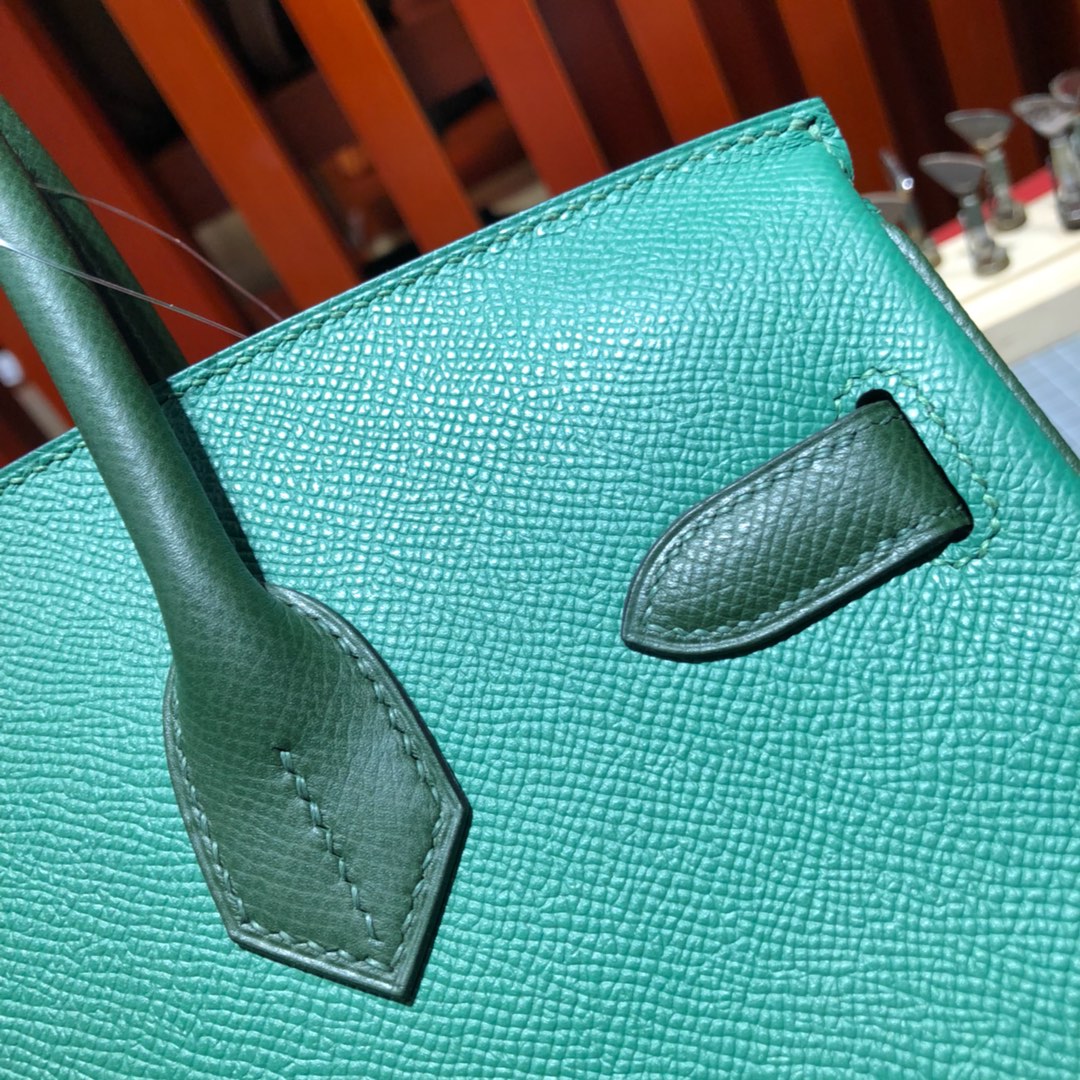 「#4687」Hermes Birkin peacock green with British green silver buckle epsom leather, hand-sewn wax thread 30cm