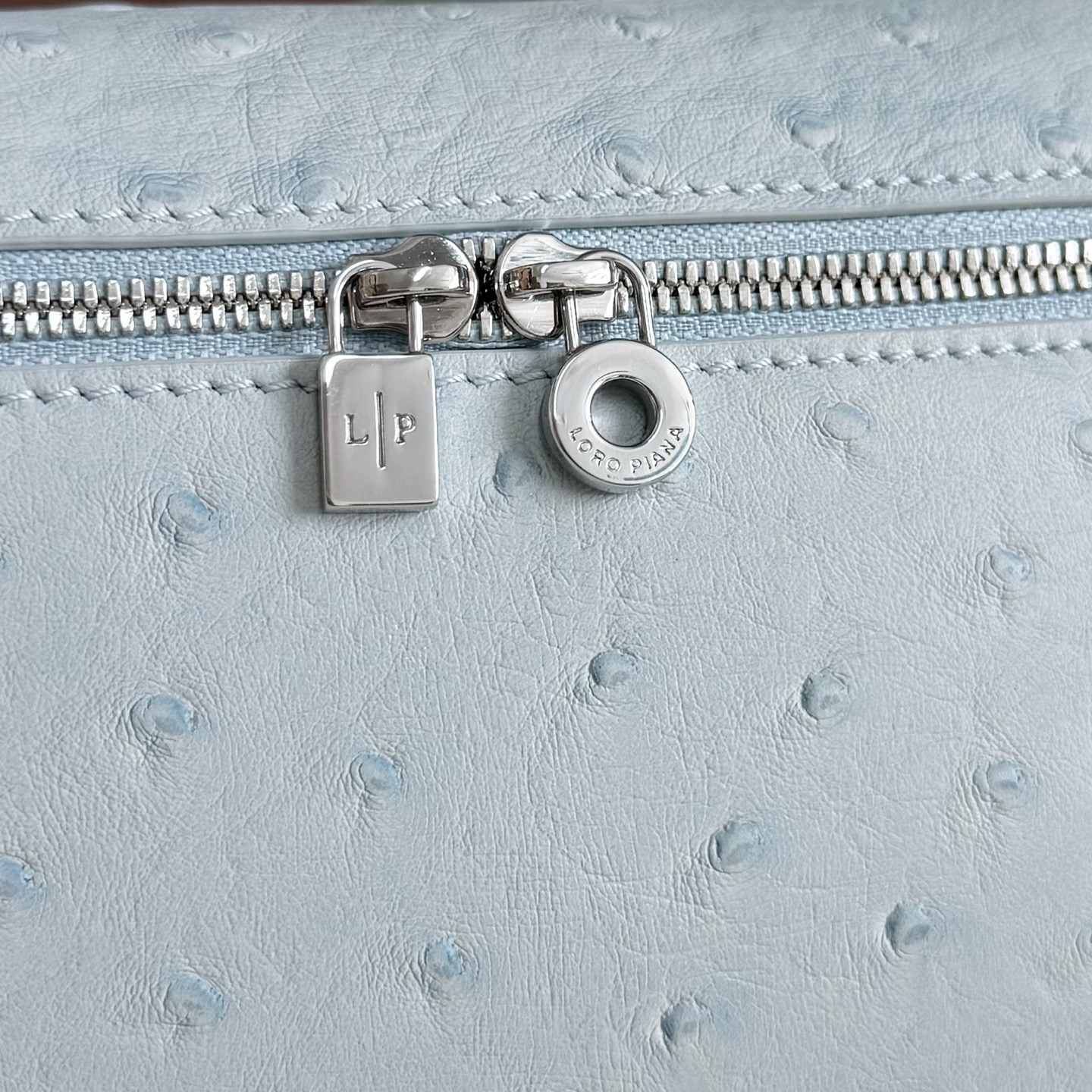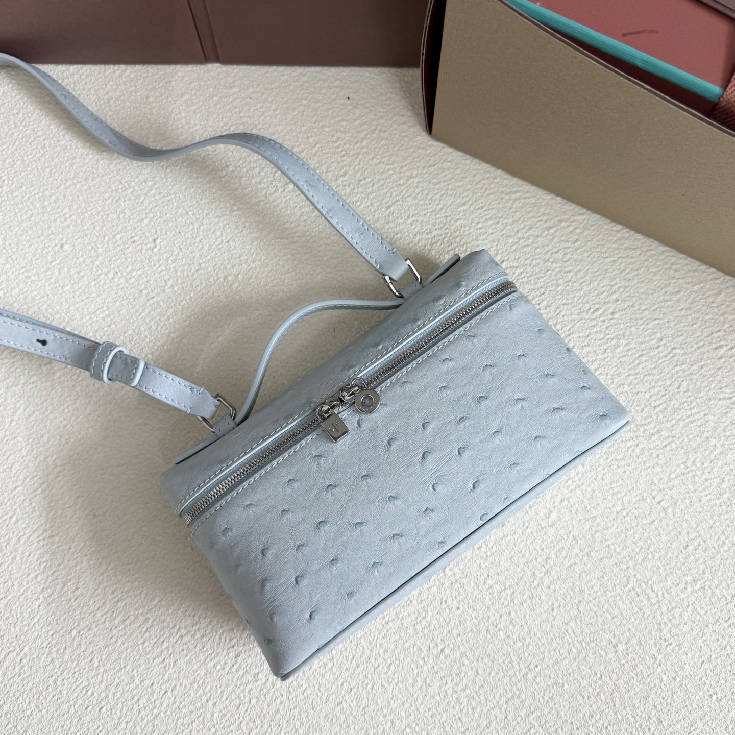 「#7039」Loro pian L19 silver buckle - FAN1034 - 19x6.5x11cm - mint breeze,Ostrich skin