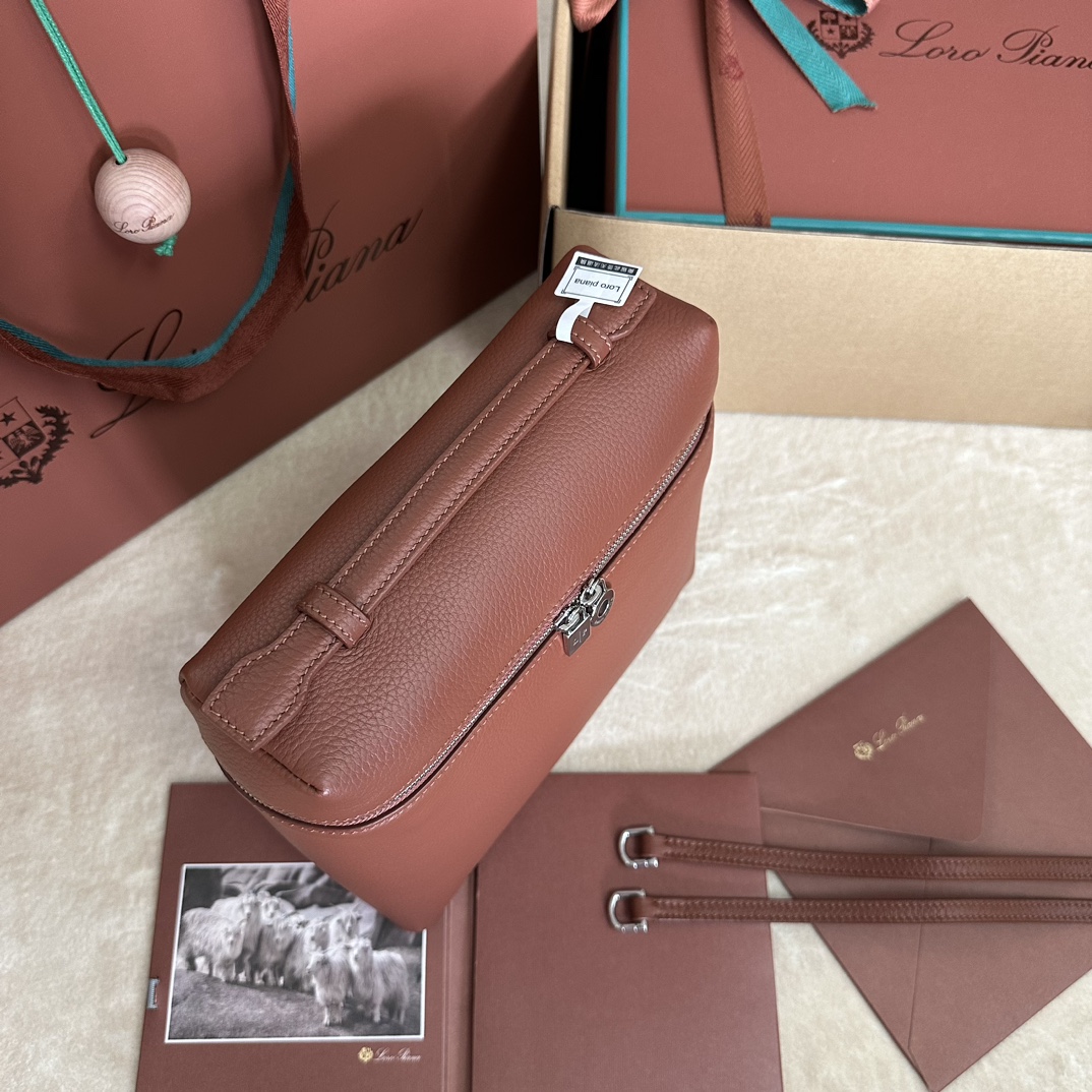 「#7121」Loro pian Extra Pocket L23.5 silver buckle - FAM6491 - 21✖️23.5✖️8cm - red brick color