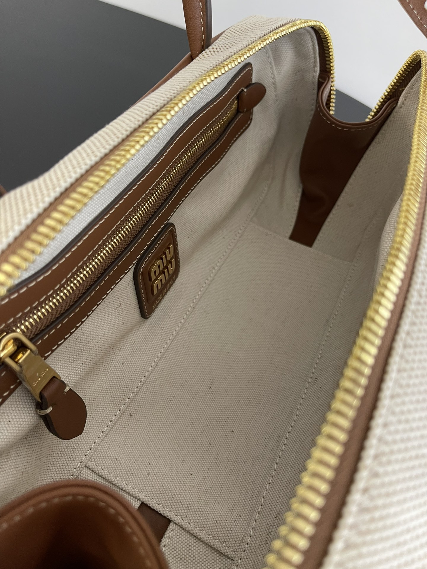 Regarding the zipper .we use thesame zipper as the original one.You can see the obvious difference fom the picture. And the inner canuas is customized with the same color as original one. it is per fect both in feel and visually.