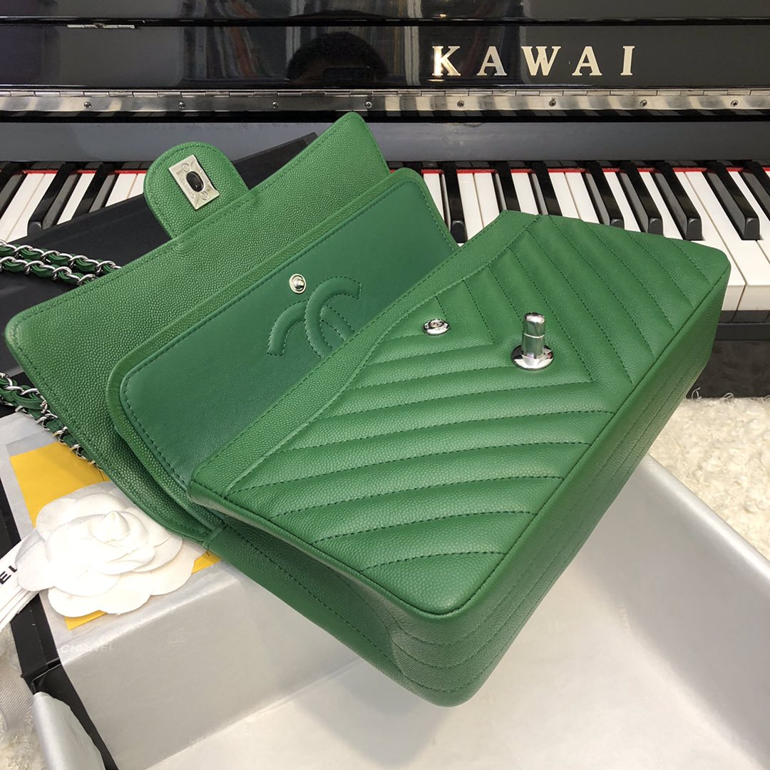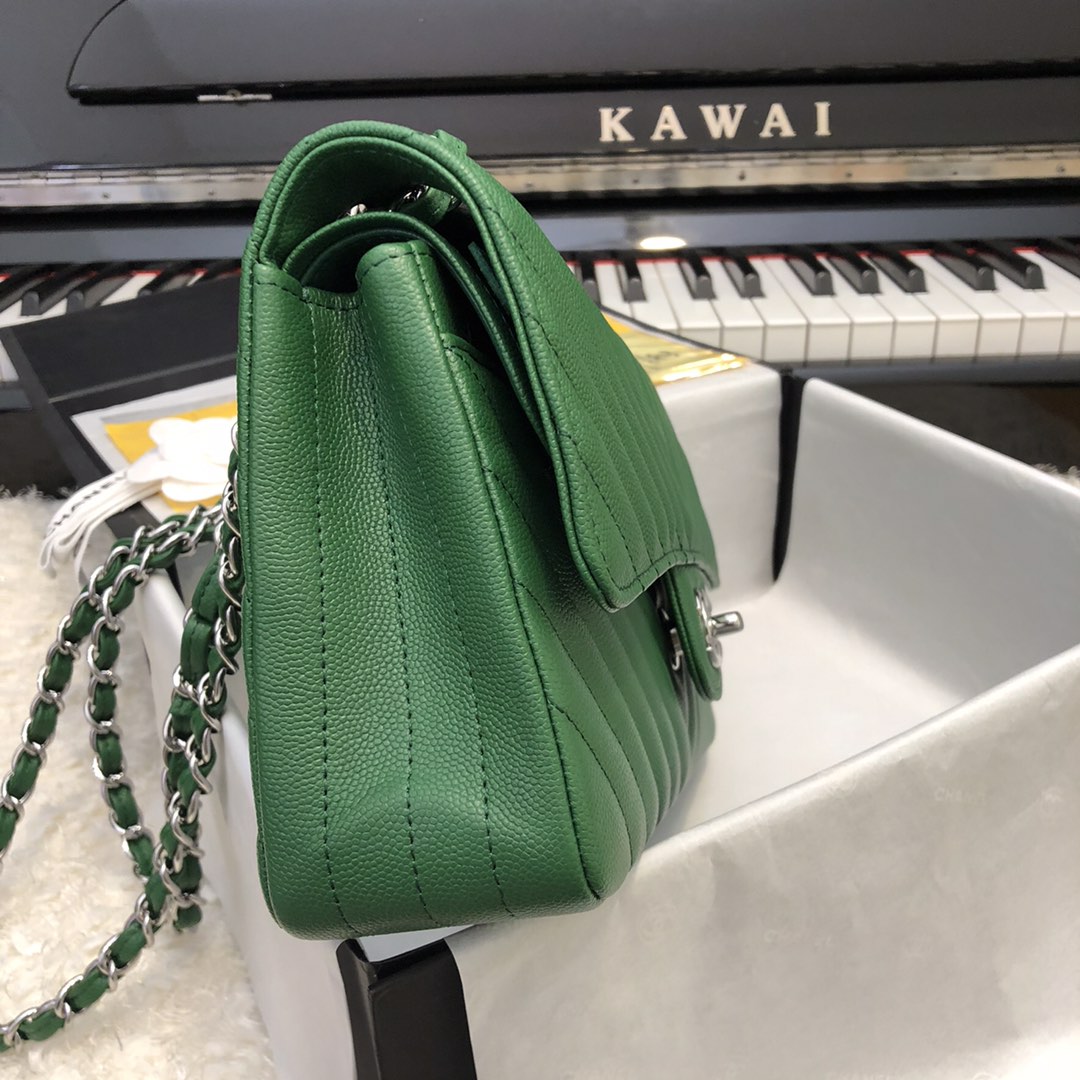 「#10231」Chanel Green Gold Buckle 2018 Big V 25cm