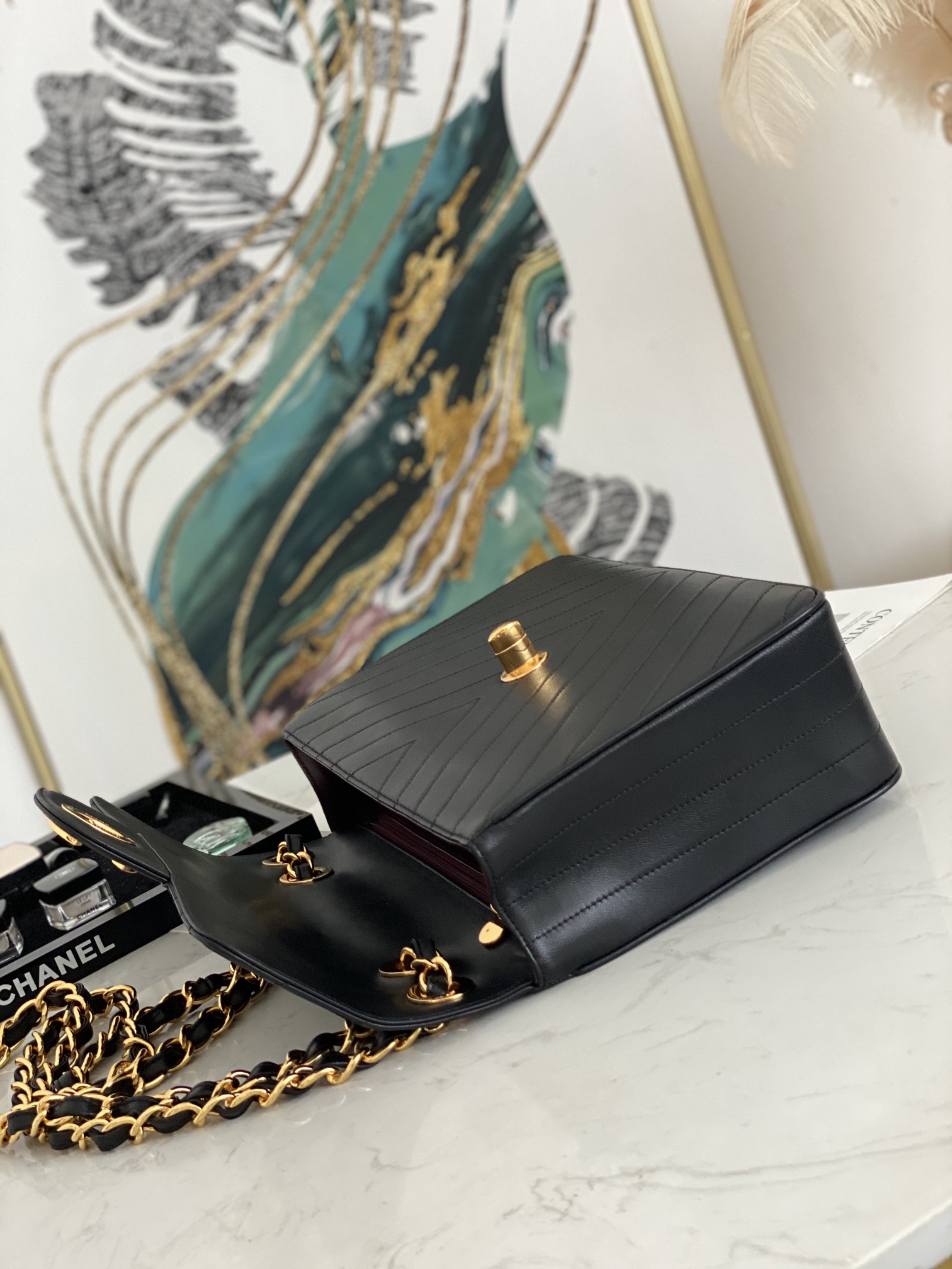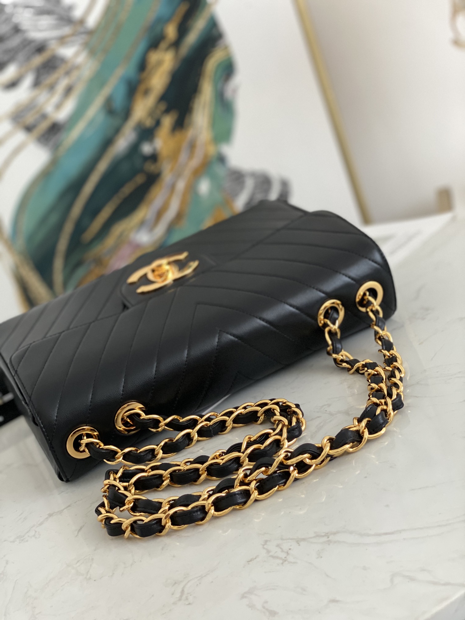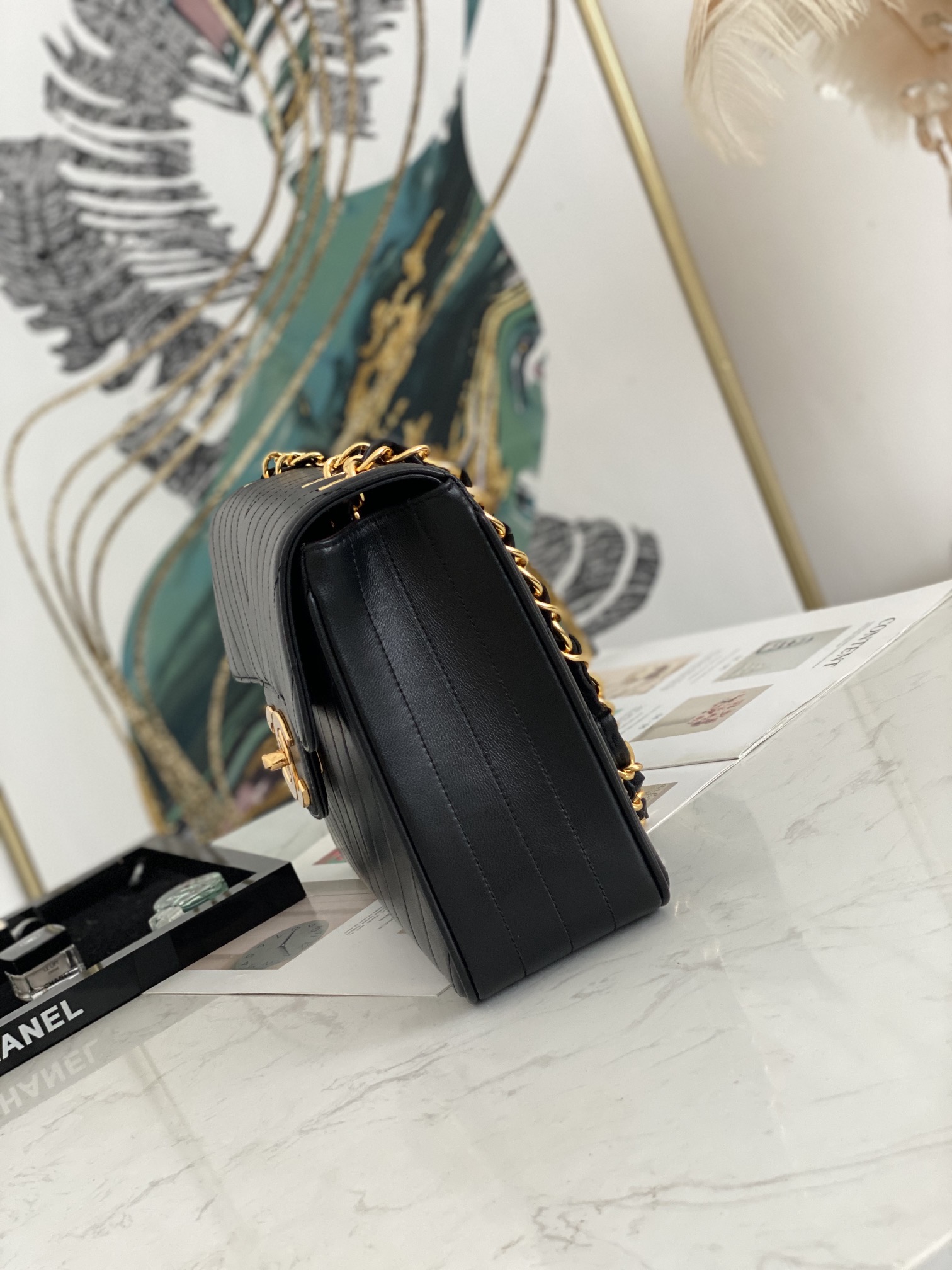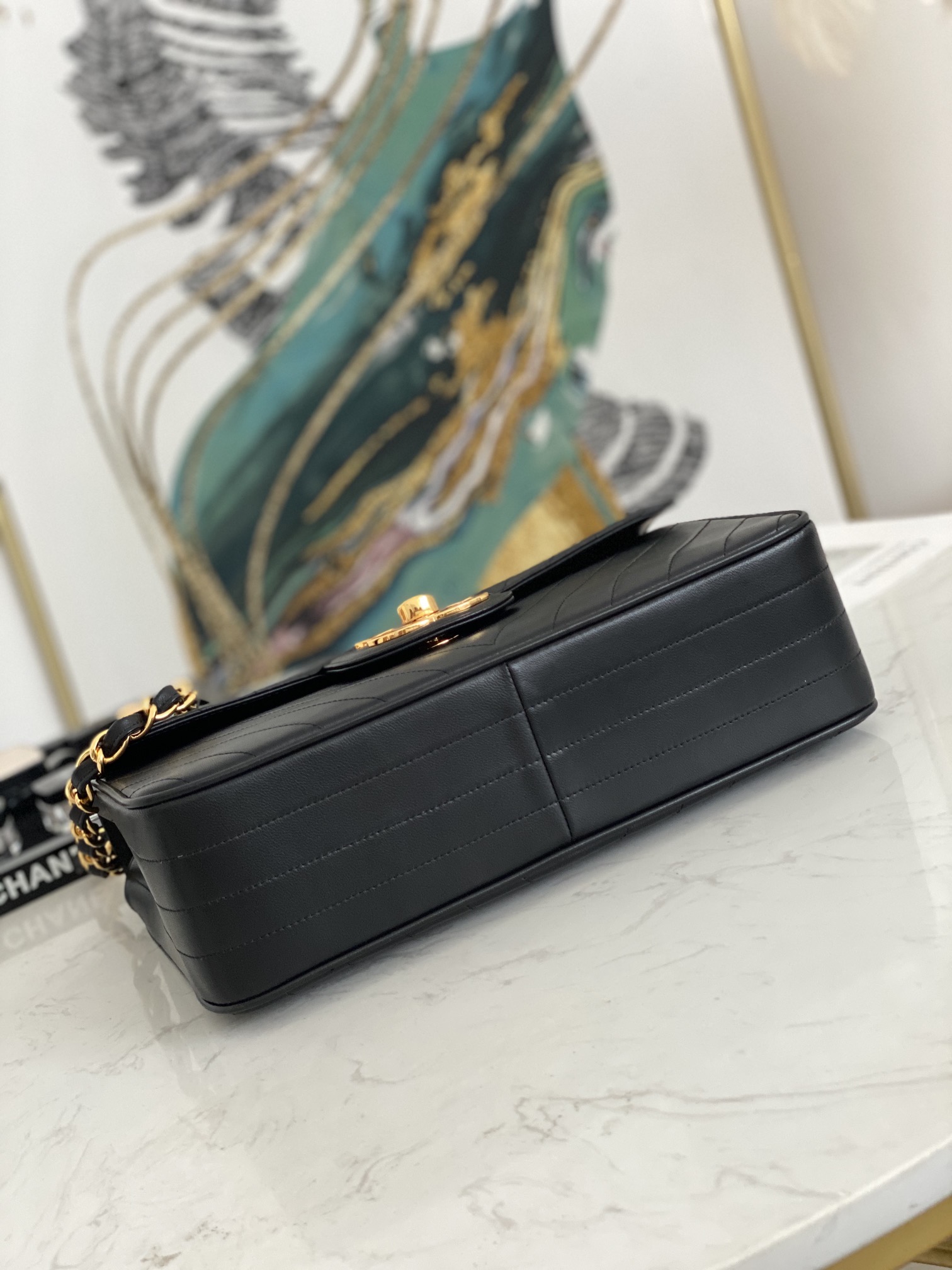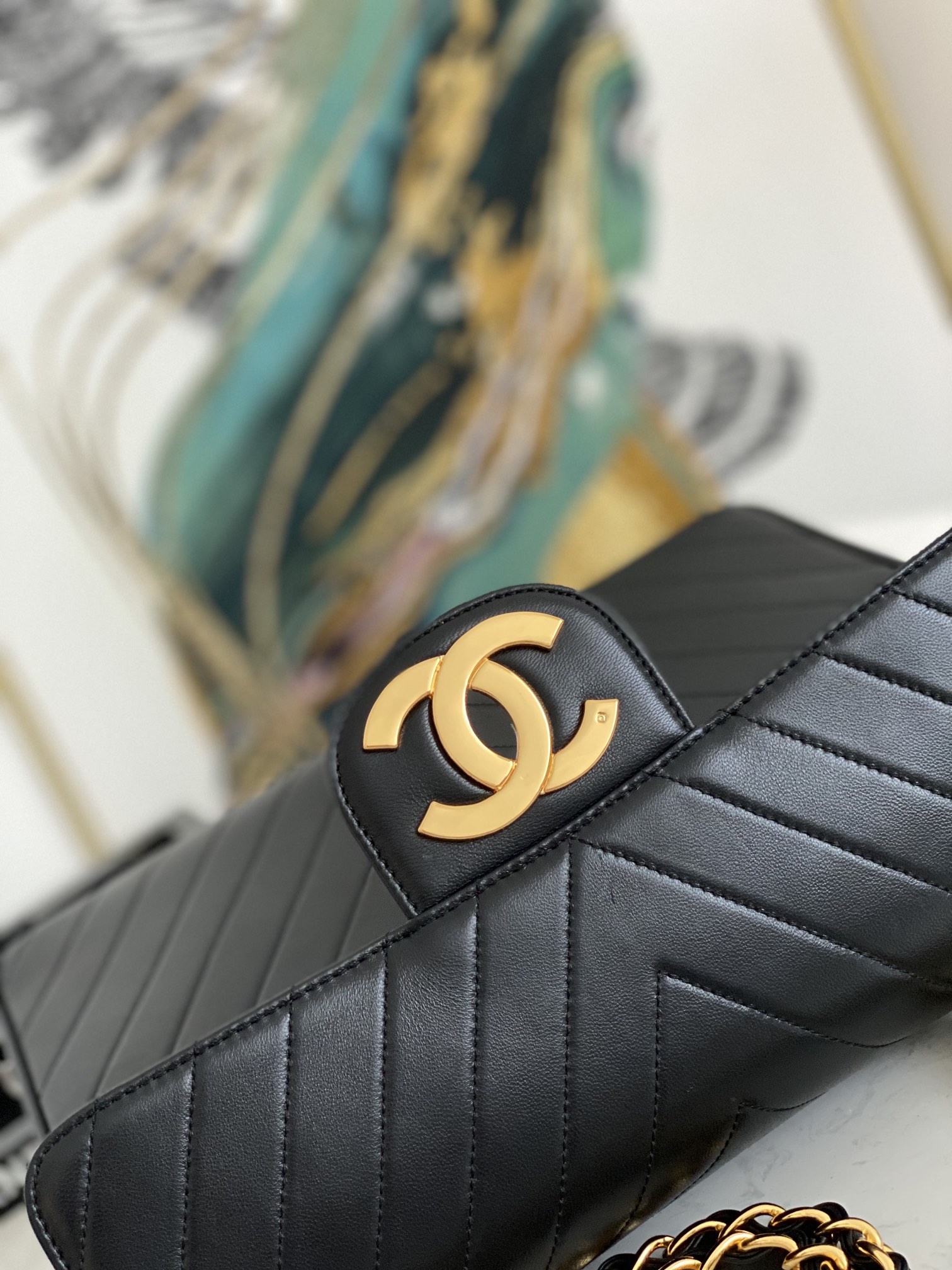 「#10306」Chanel Classic Flap Bag Gold Buckle Gold Chain V Shape A88 30*21*8cm