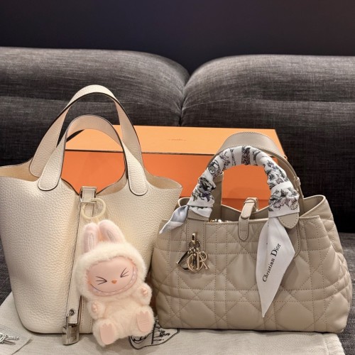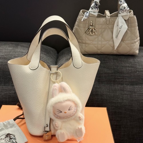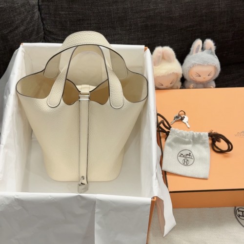 「#4054」 Hermès Milkshake White Picotin Lock Shopping Basket Silver Buckle