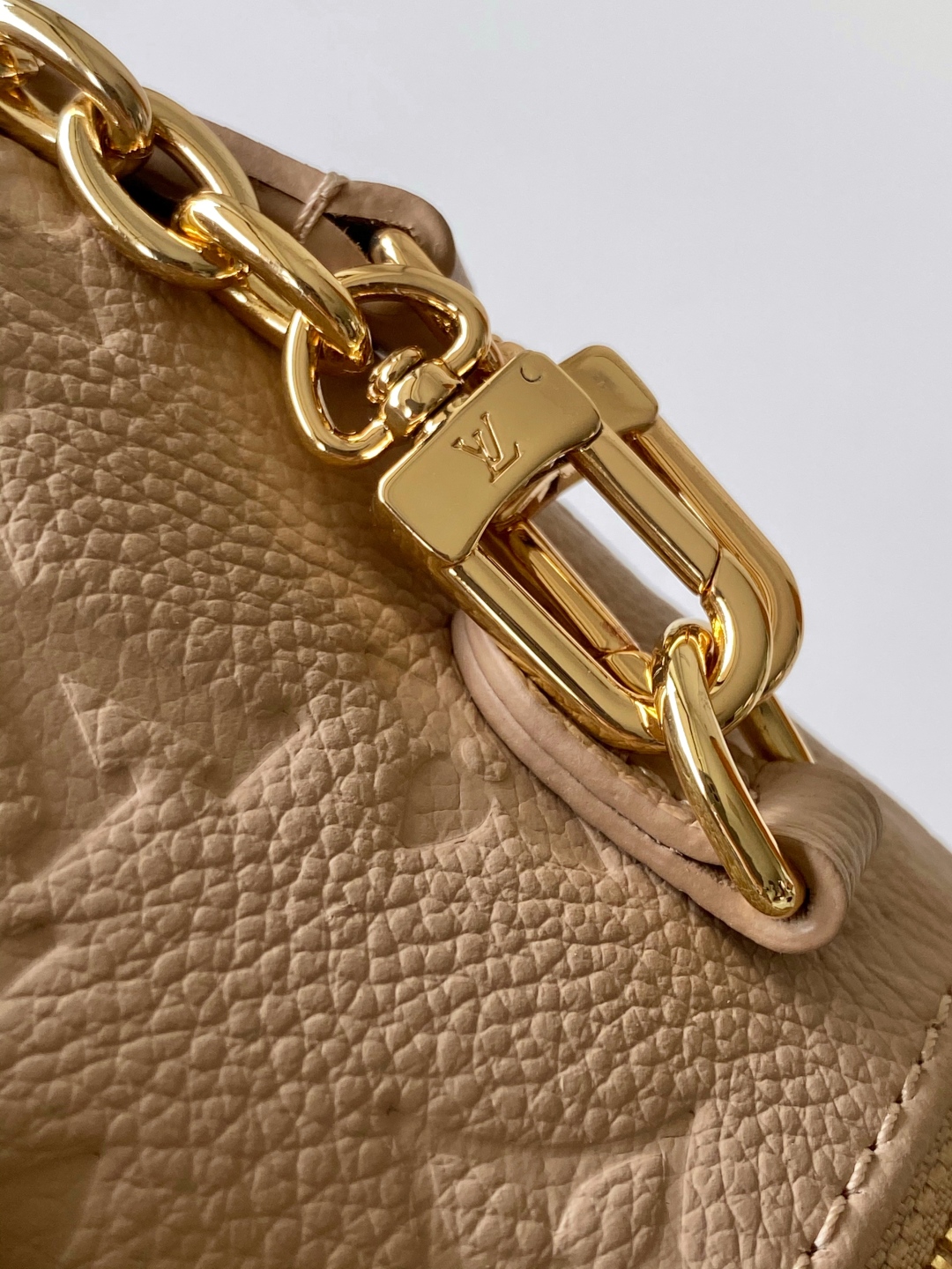 Forthe shoulderstraps, we use thesame materialas the originaland use 16 colors ofyarn, wovenwith a 3D machine, theLouis Vuitton letters are verythree-dimensional,unlike others whichare wovenby machinesand thenprintedwith colors. And the thickness ofour shoulder straps is very thick, the same asthe original