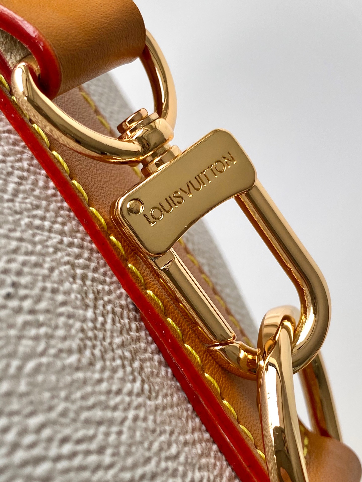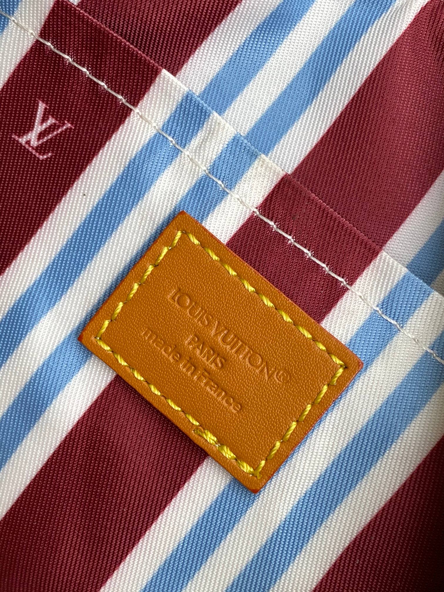 Forthe shoulderstraps, we use thesame materialas the originaland use 16 colors ofyarn, wovenwith a 3D machine, theLouis Vuitton letters are verythree-dimensional,unlike others whichare wovenby machinesand thenprintedwith colors. And the thickness ofour shoulder straps is very thick, the same asthe original