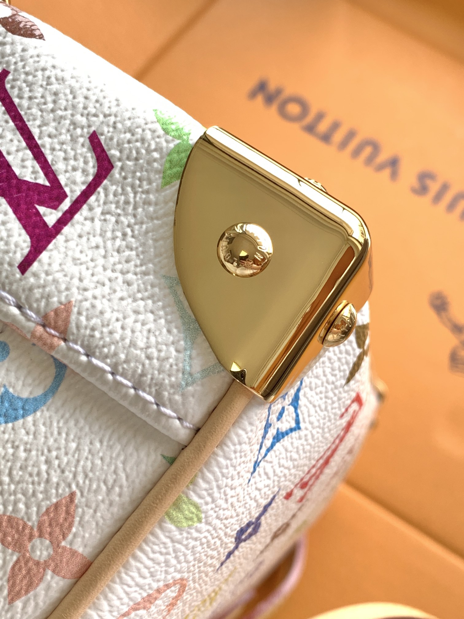 Forthe shoulderstraps, we use thesame materialas the originaland use 16 colors ofyarn, wovenwith a 3D machine, theLouis Vuitton letters are verythree-dimensional,unlike others whichare wovenby machinesand thenprintedwith colors. And the thickness ofour shoulder straps is very thick, the same asthe original