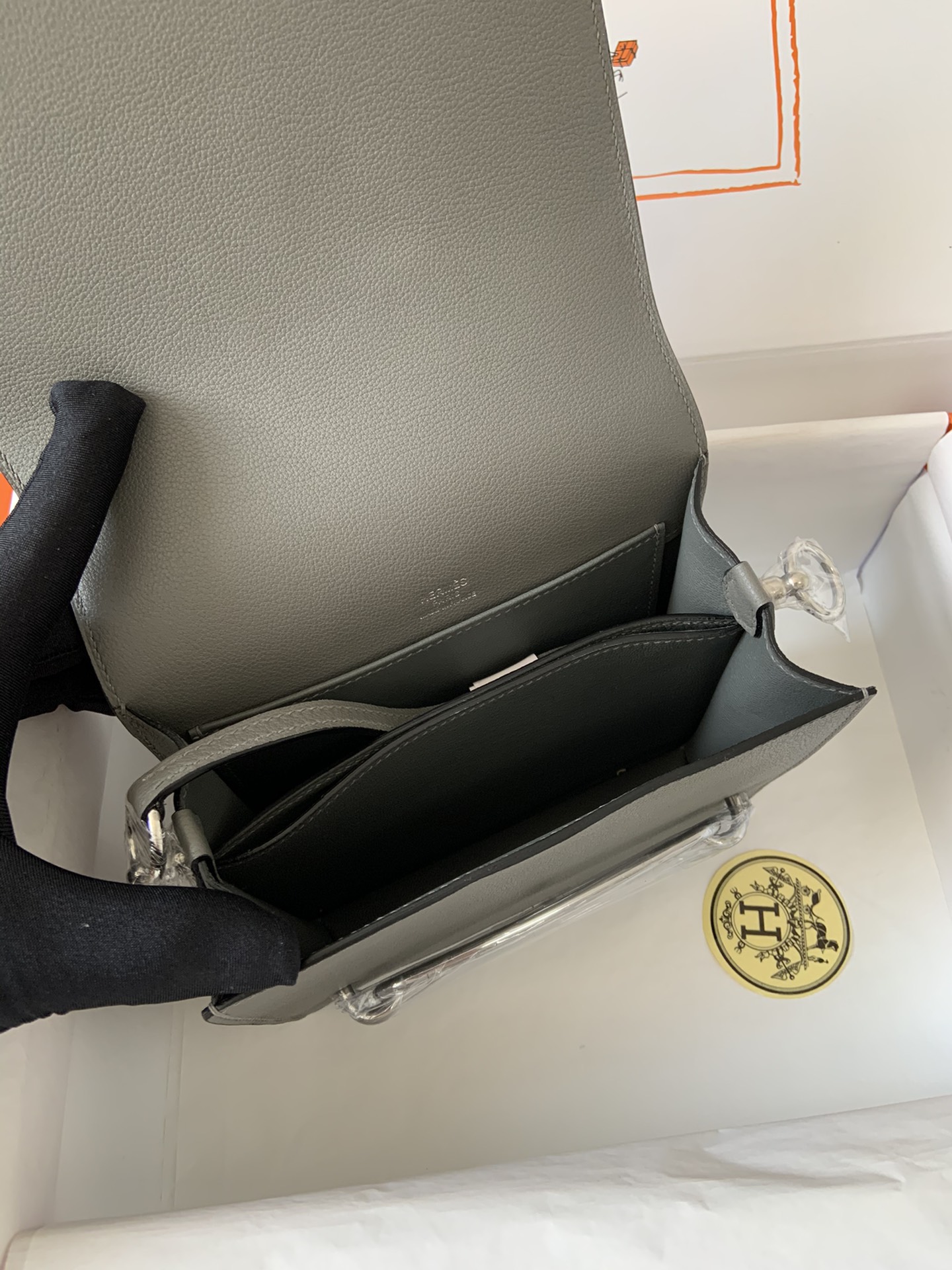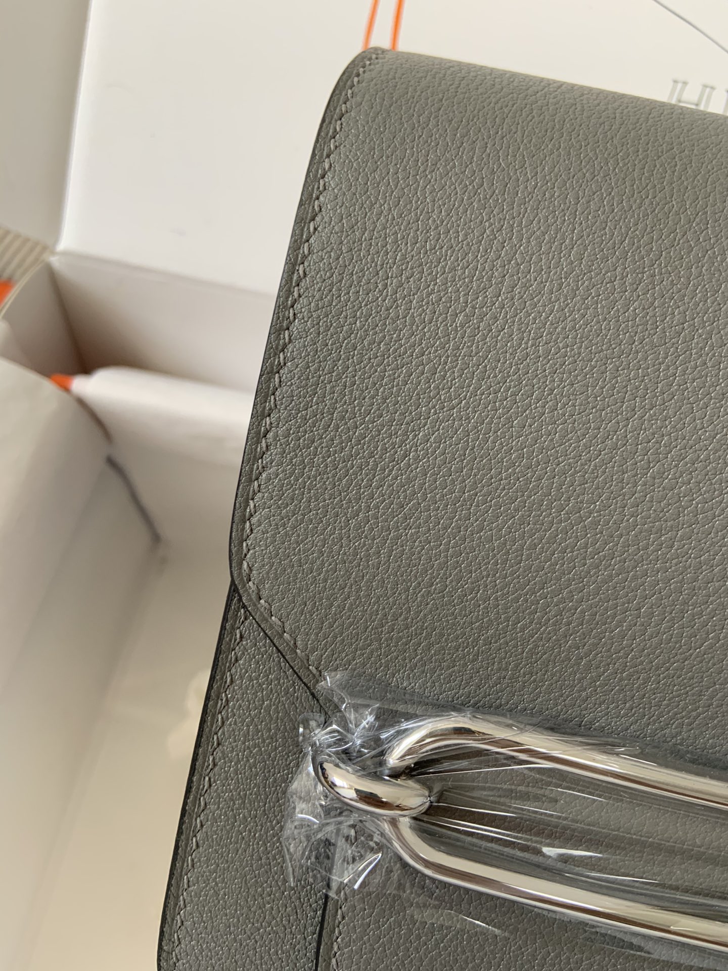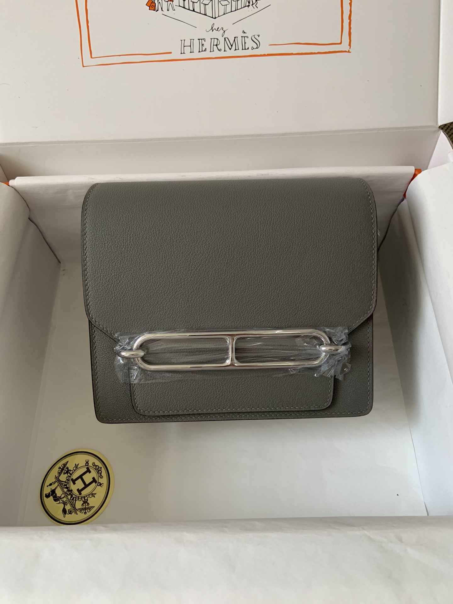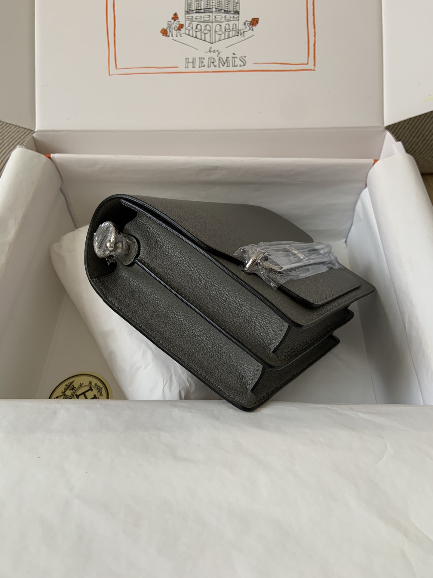 「#4027」Hermes Pig Nose Bag Grey Silver Buckle Roulis 19cm