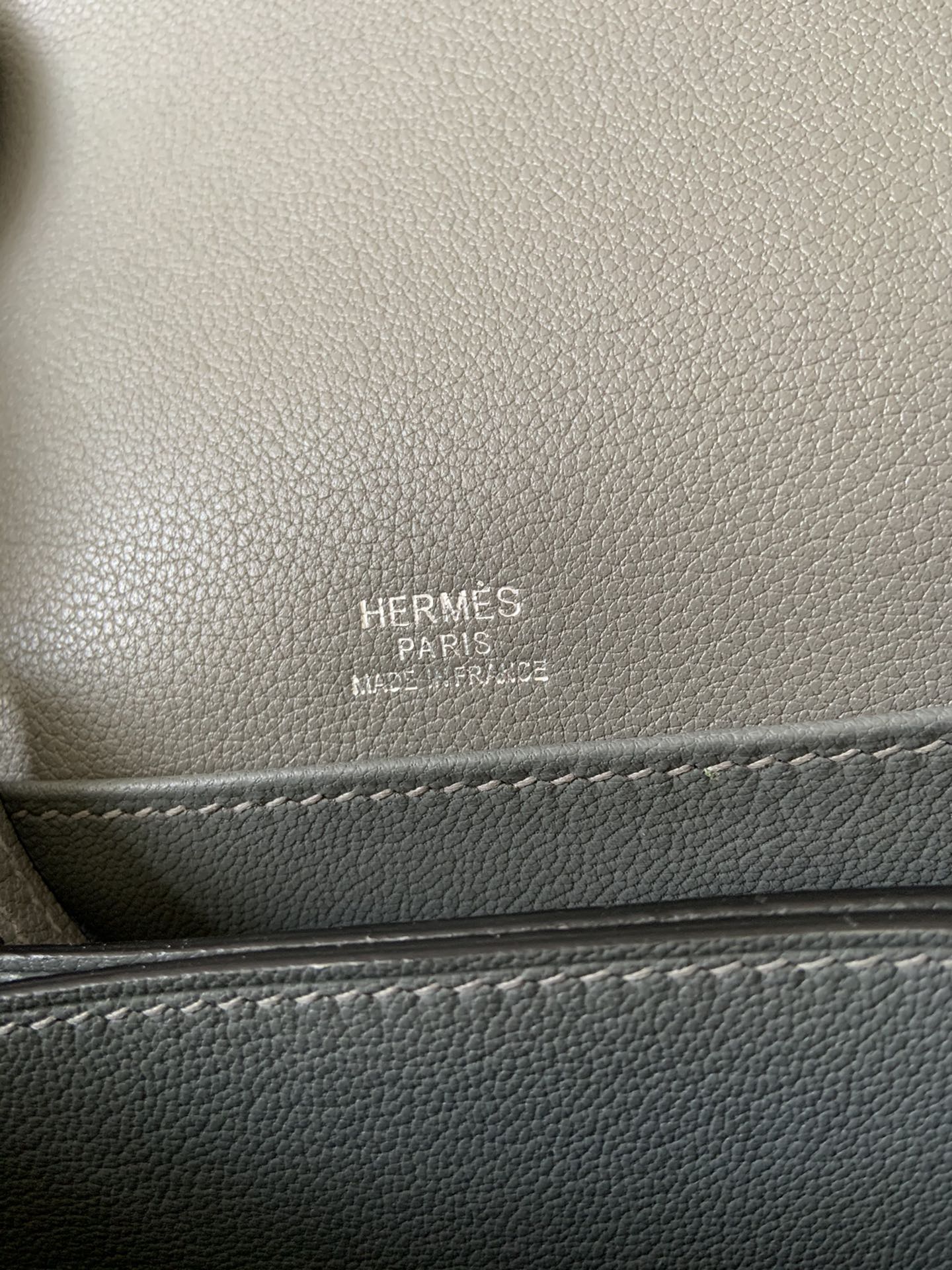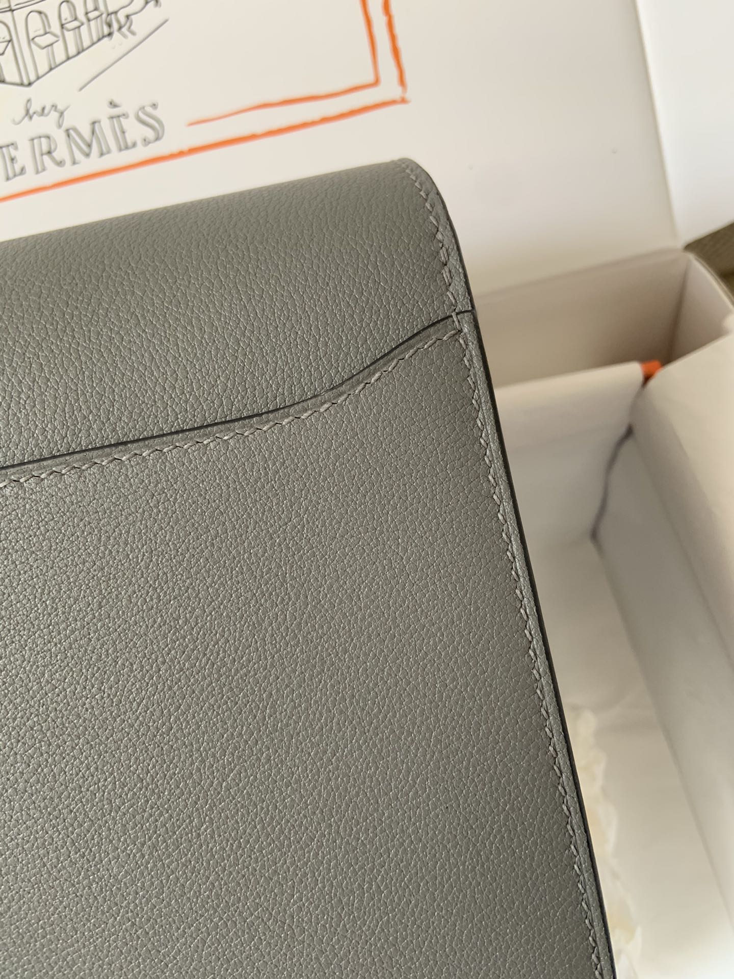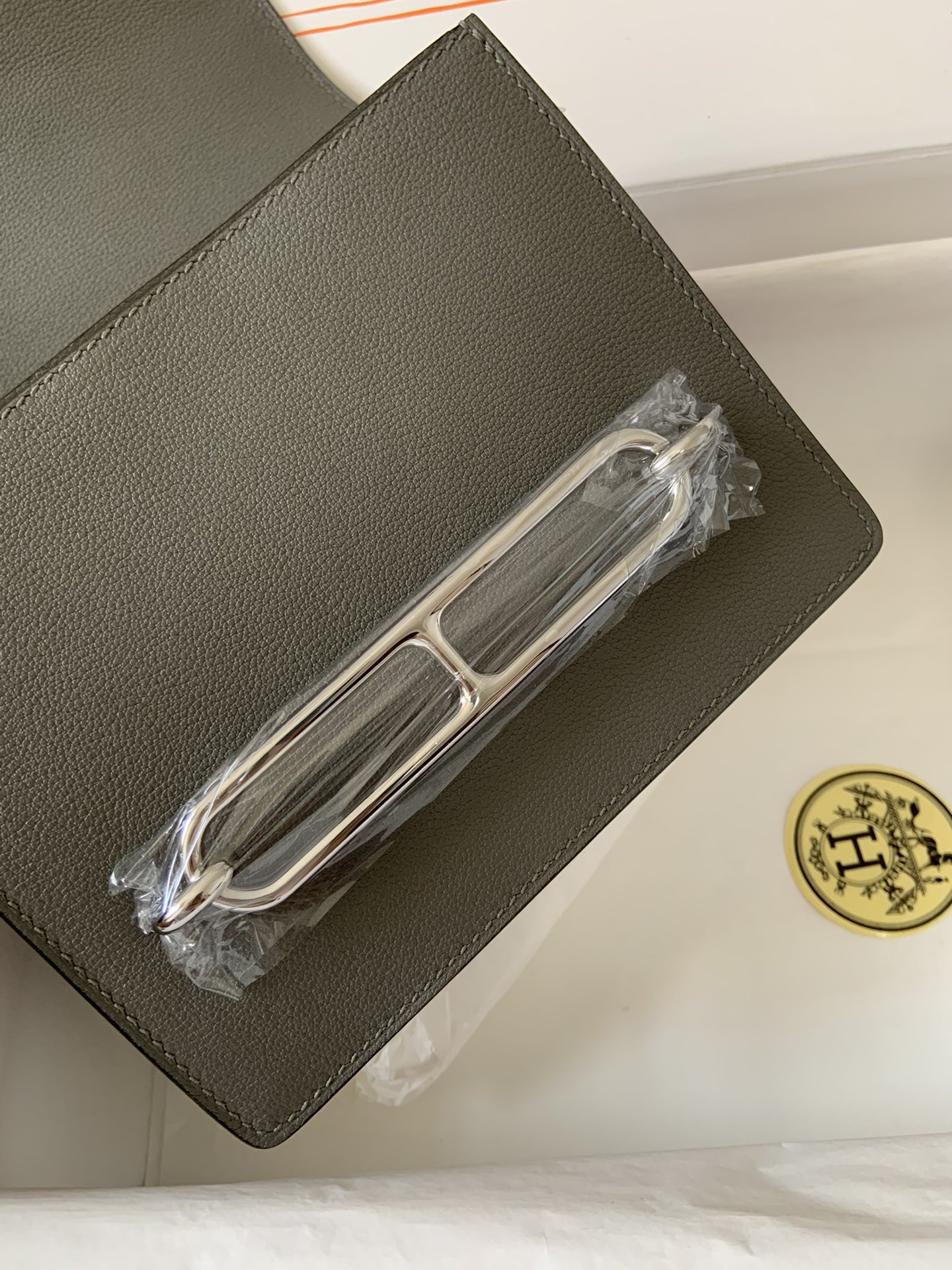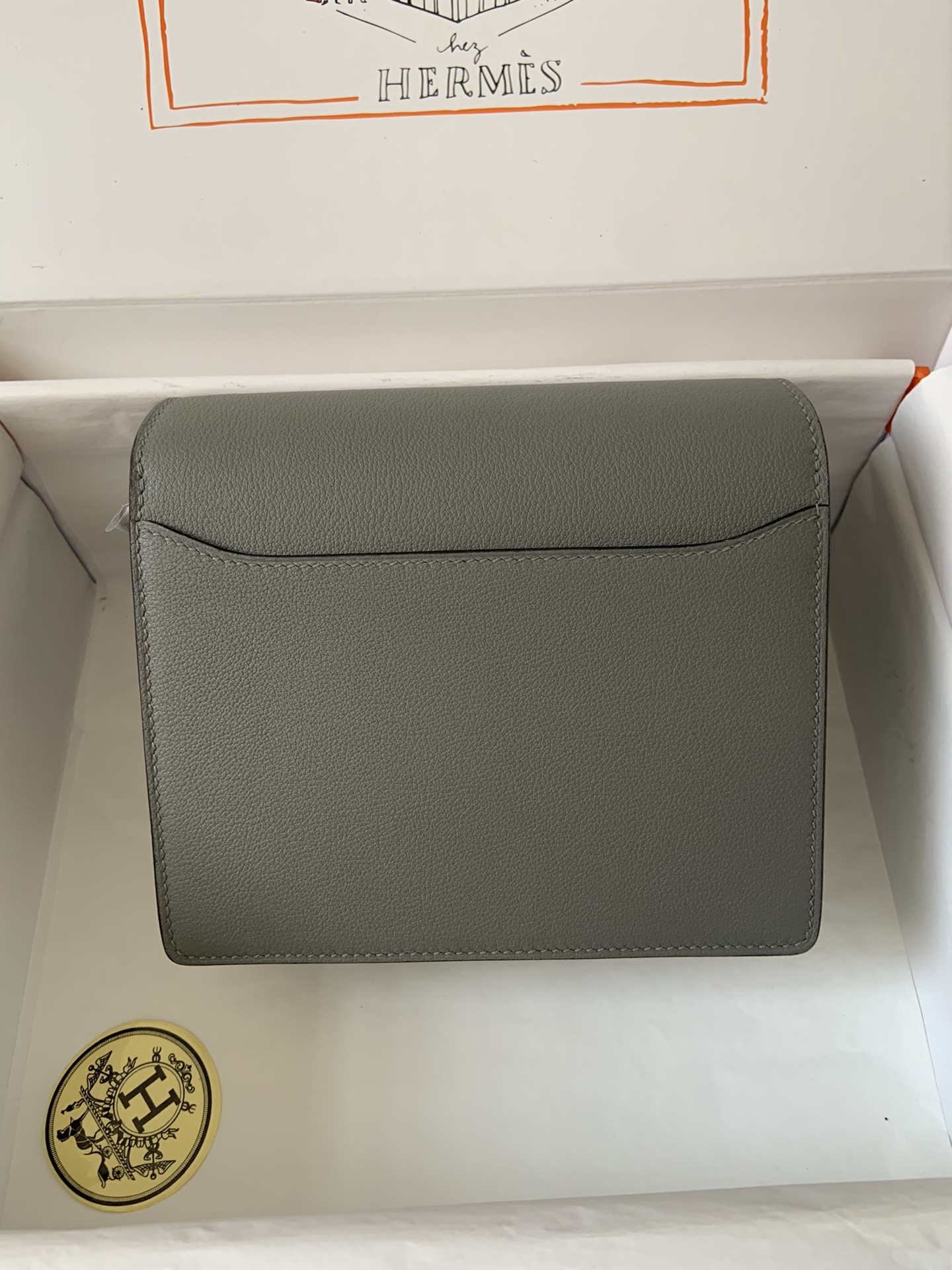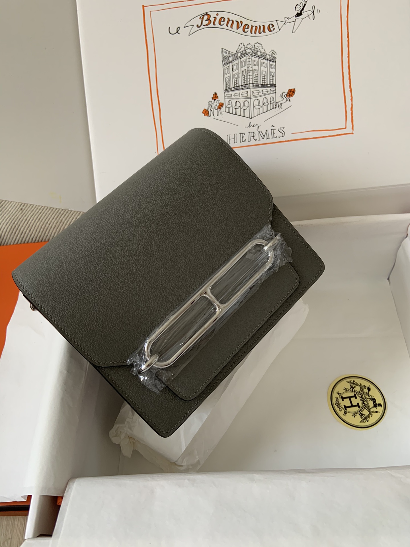 「#4027」Hermes Pig Nose Bag Grey Silver Buckle Roulis 19cm