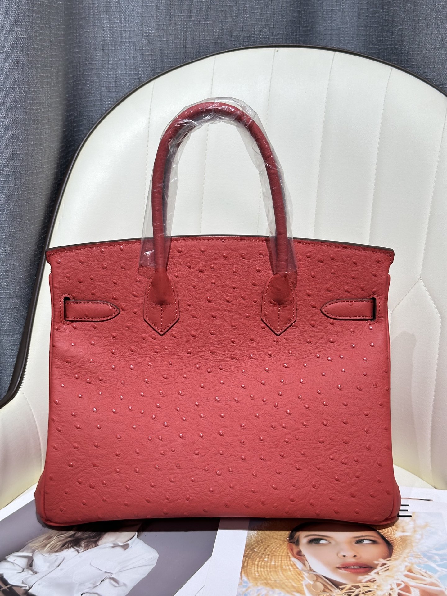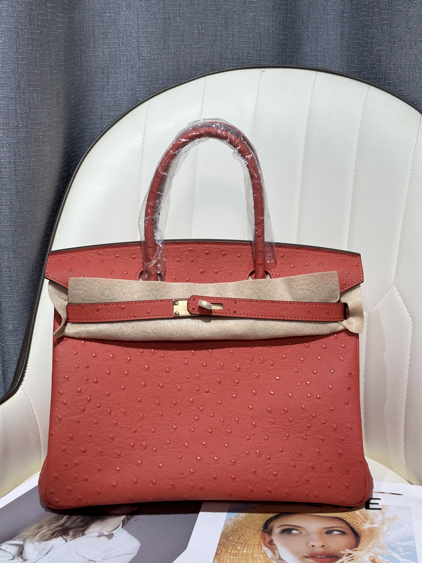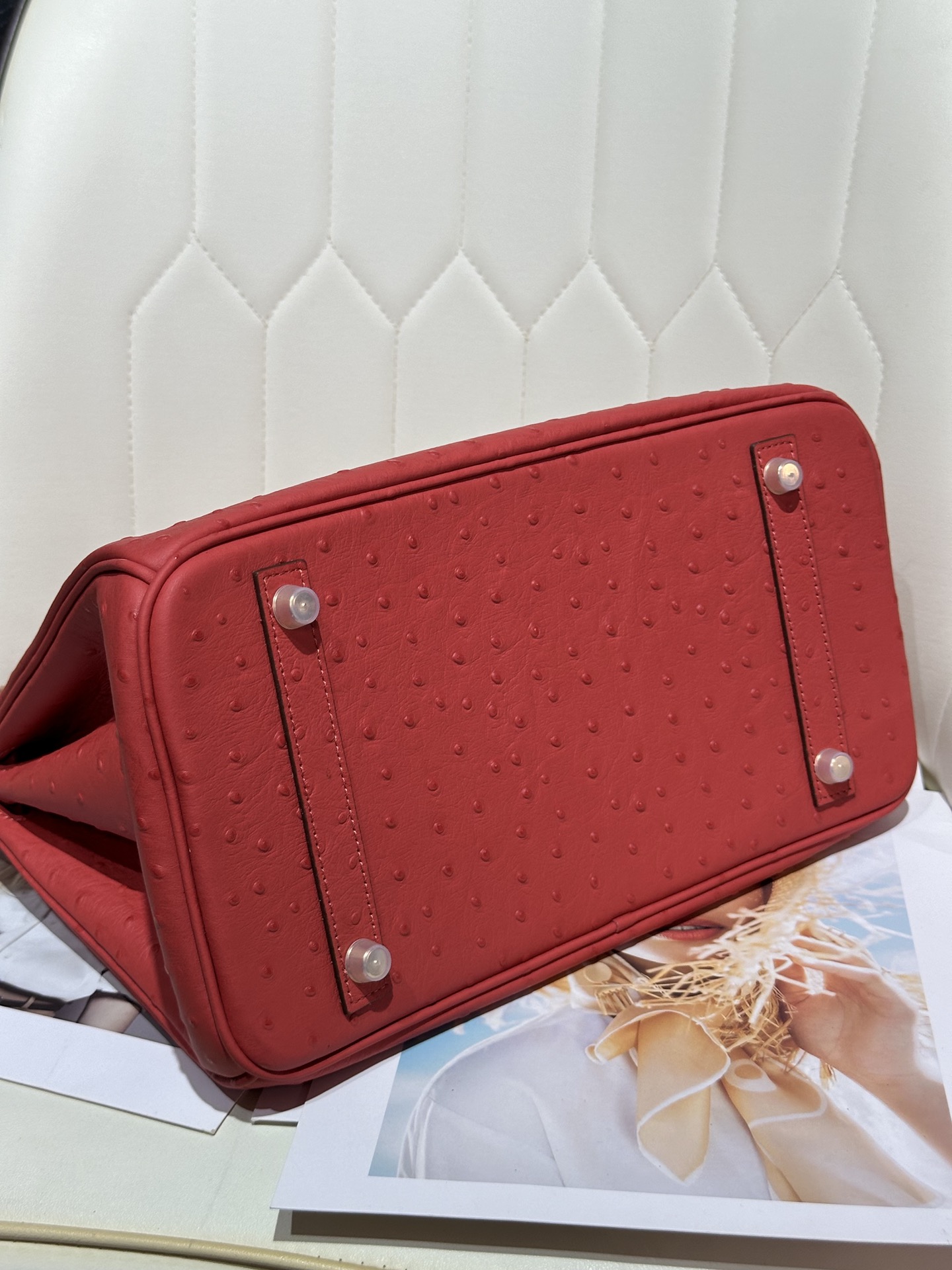 「#4154」 Hermès Red Ostrich Gold Buckle Birkin Bag 30cm