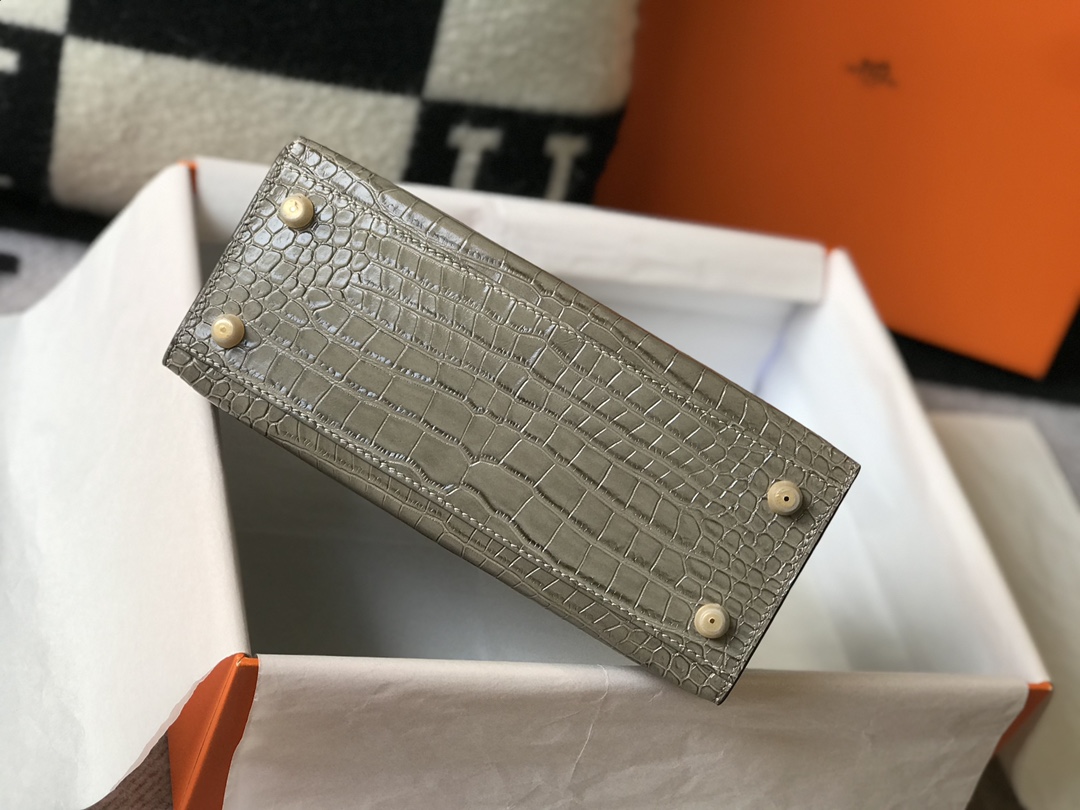 「#4170」 Hermès Crocodile Pattern Elephant Gray Kelly Bag Gold Buckle 25cm