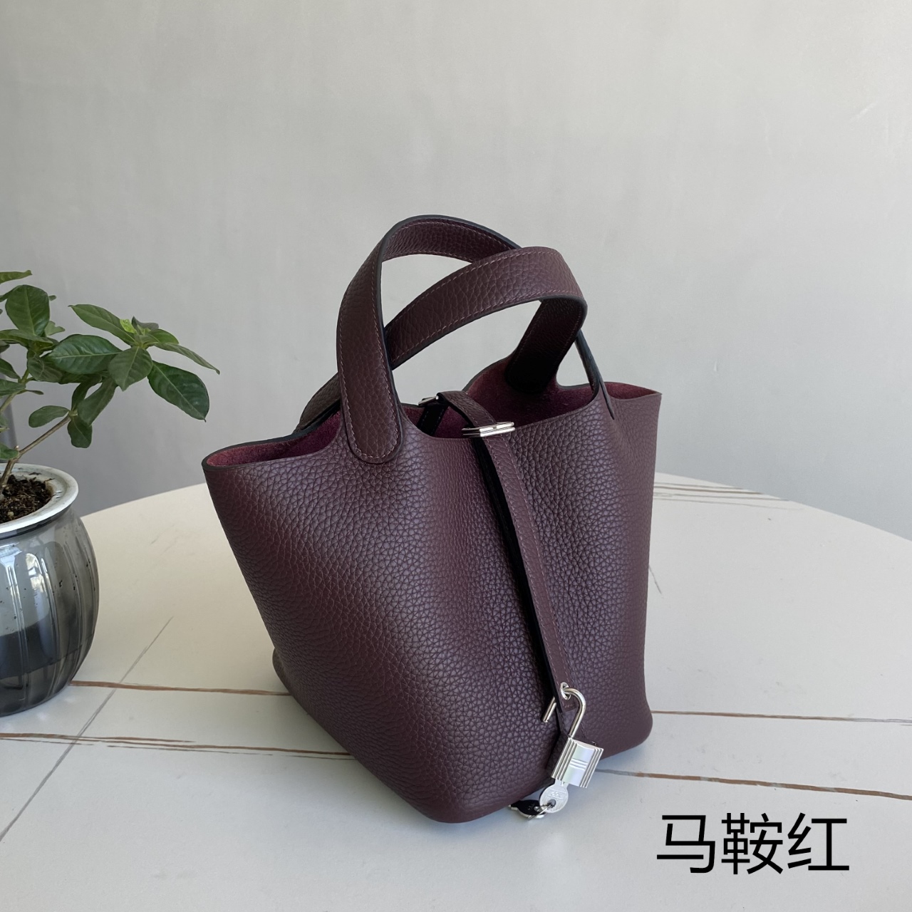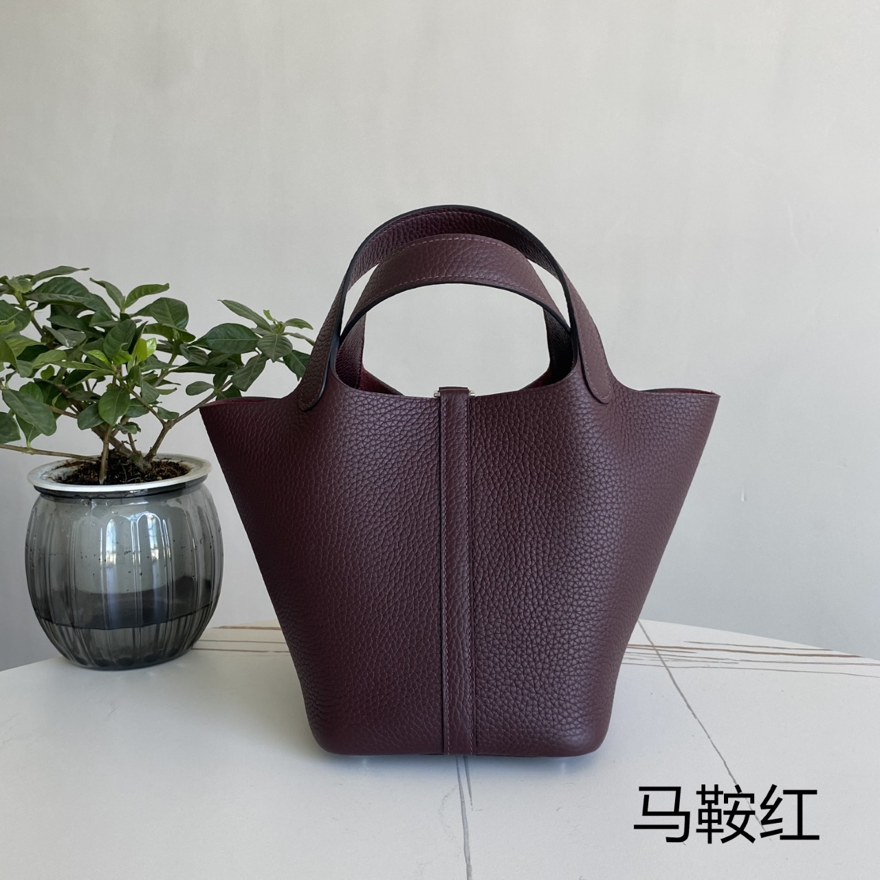 「#4404」 Hermès Saddle Red Silver Buckle Picotin Lock 18cm