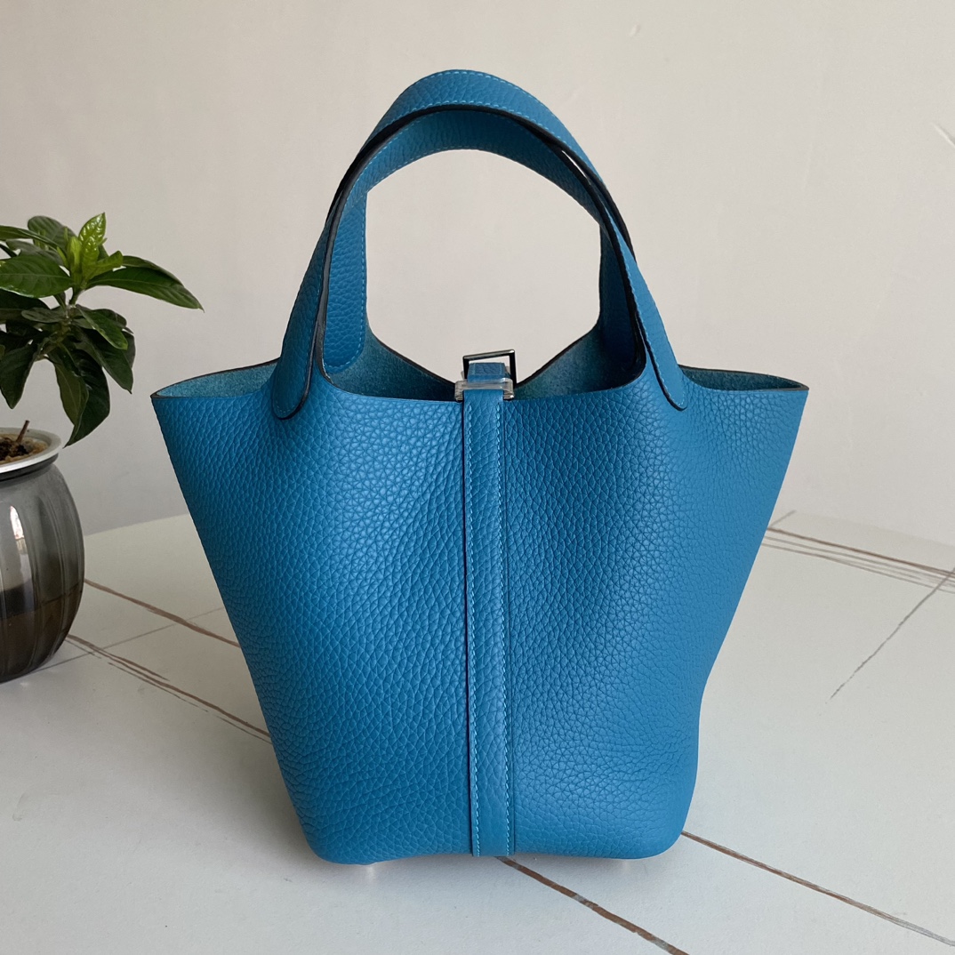 「#4490」 Hermes Tanzania Blue Silver Buckle 18cm Picotin Lock 18cm