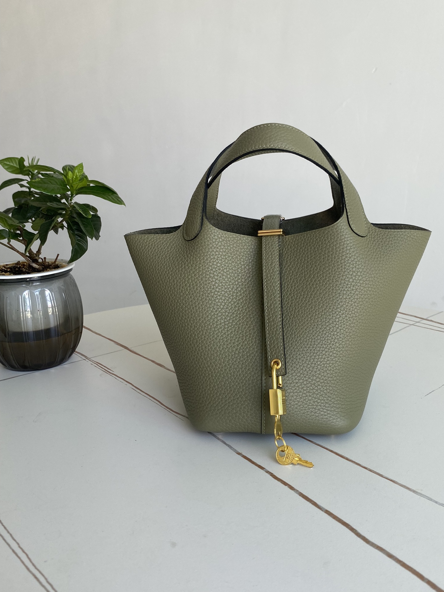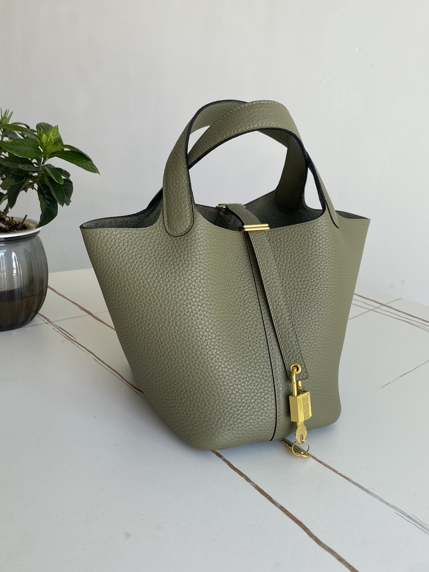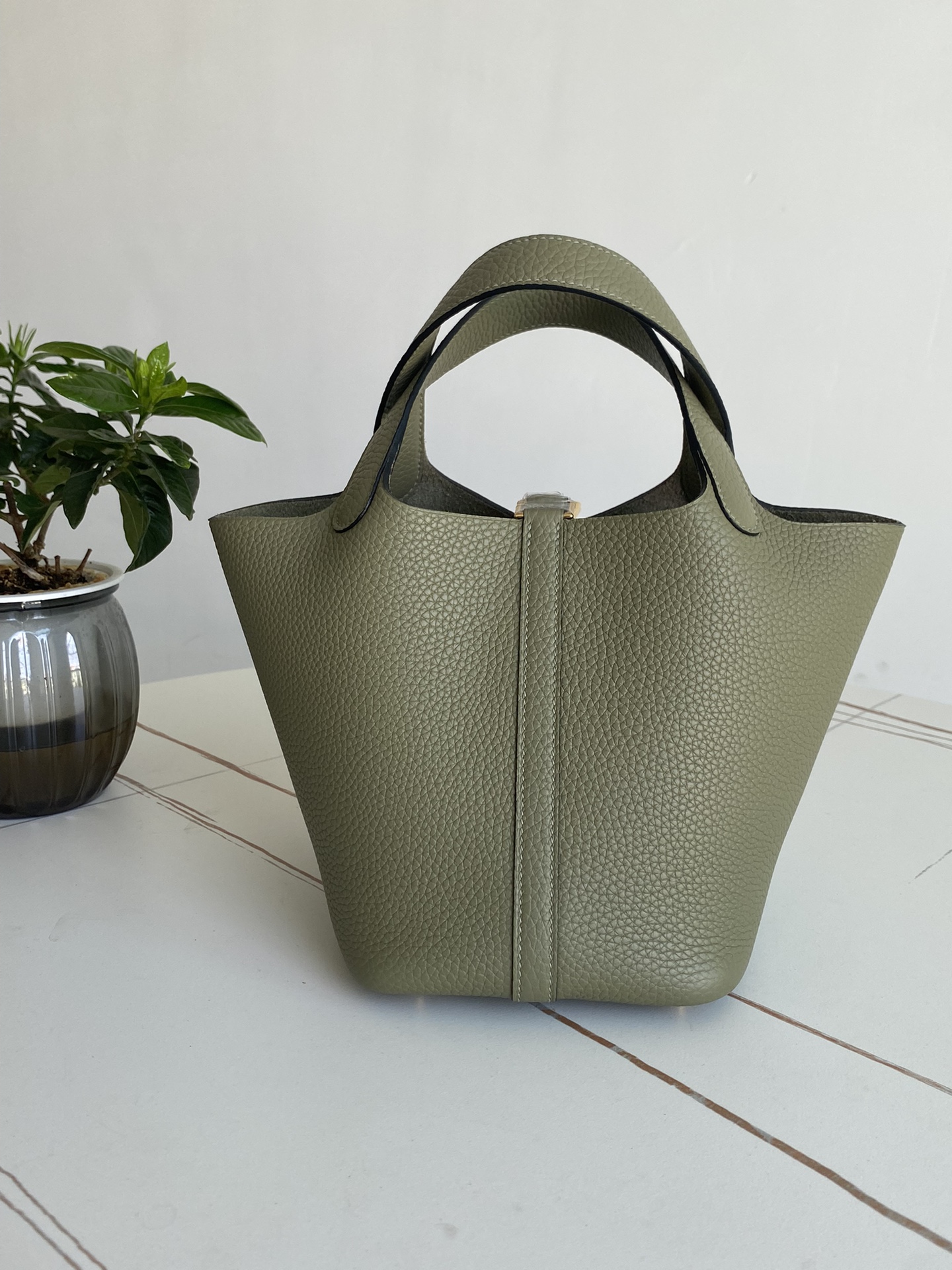 「#4497」 Hermes Sage Green Gold Buckle 18cm Picotin Lock 18cm