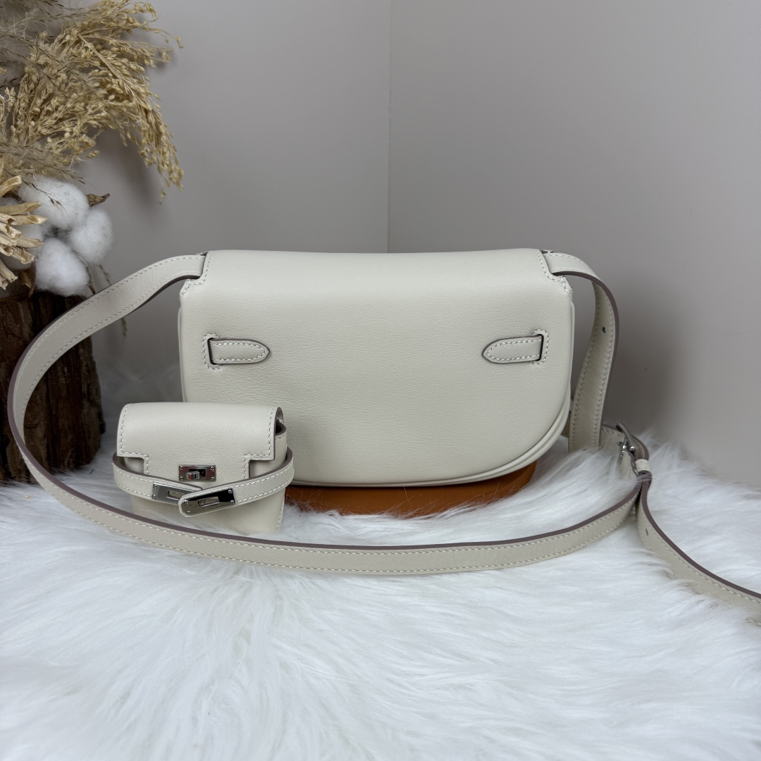 「#4506」 Hermès Moon Bag Beige Silver Buckle Kelly Moove Large Bag 17cm Small Bag 7.5cm