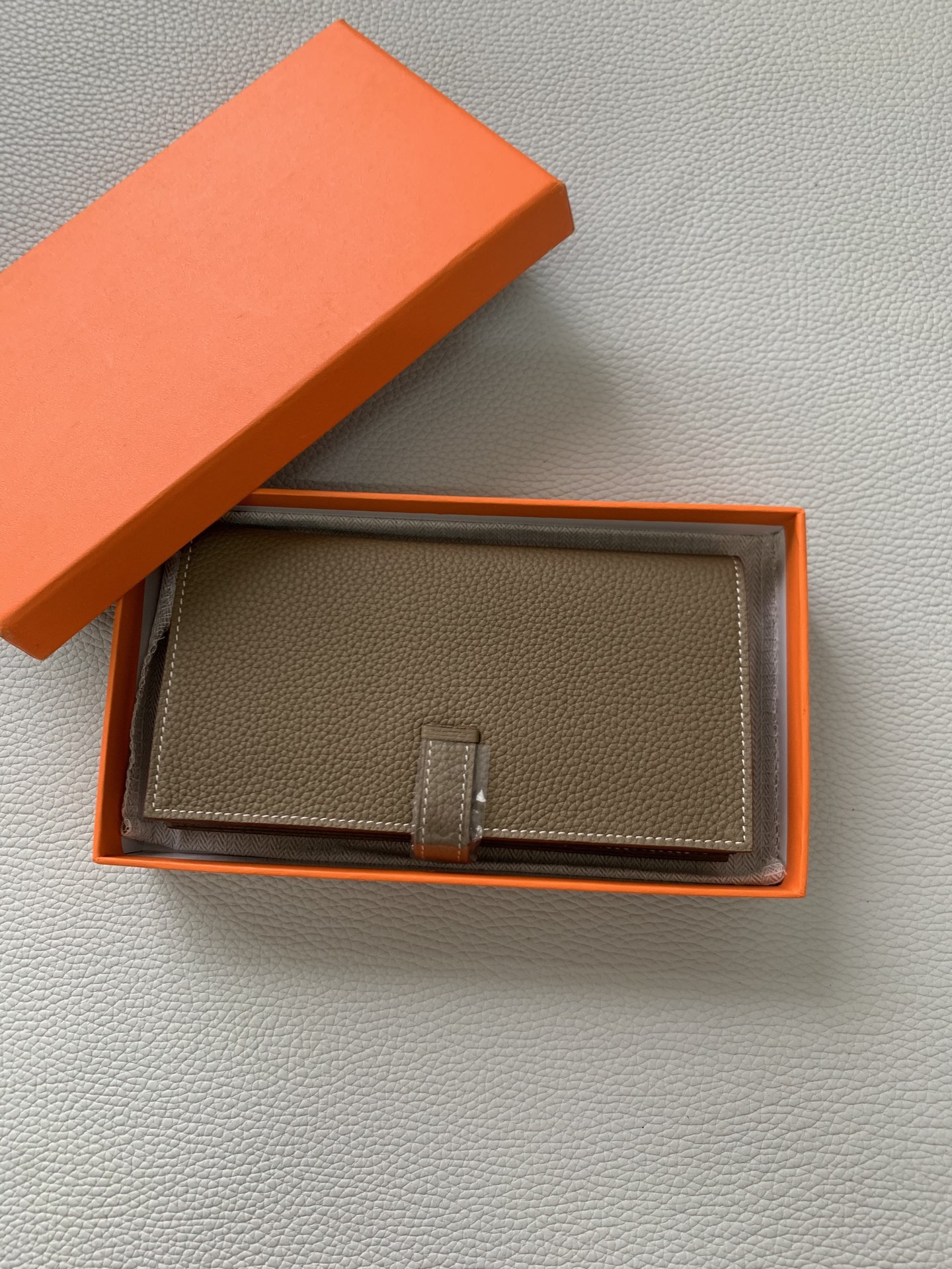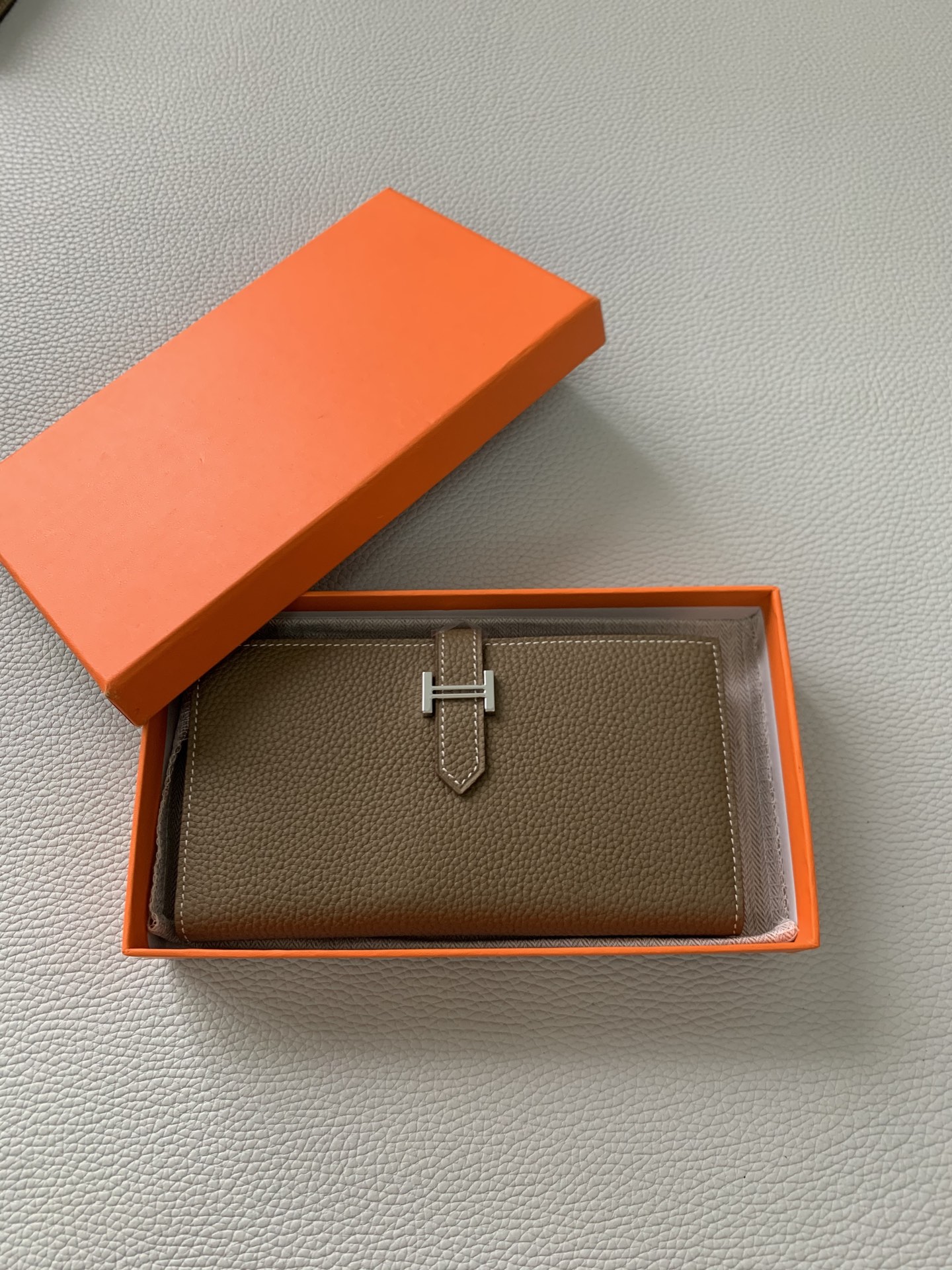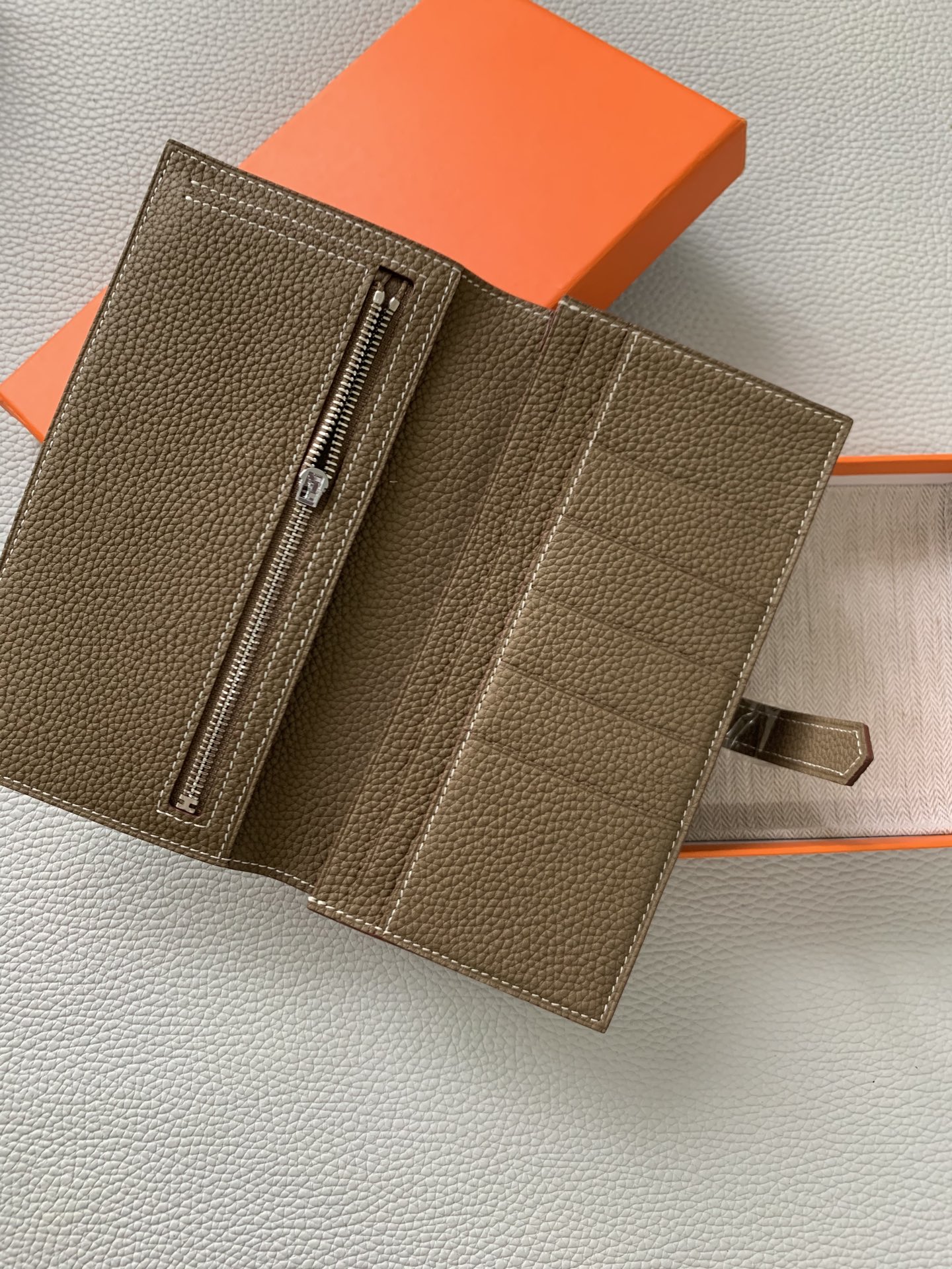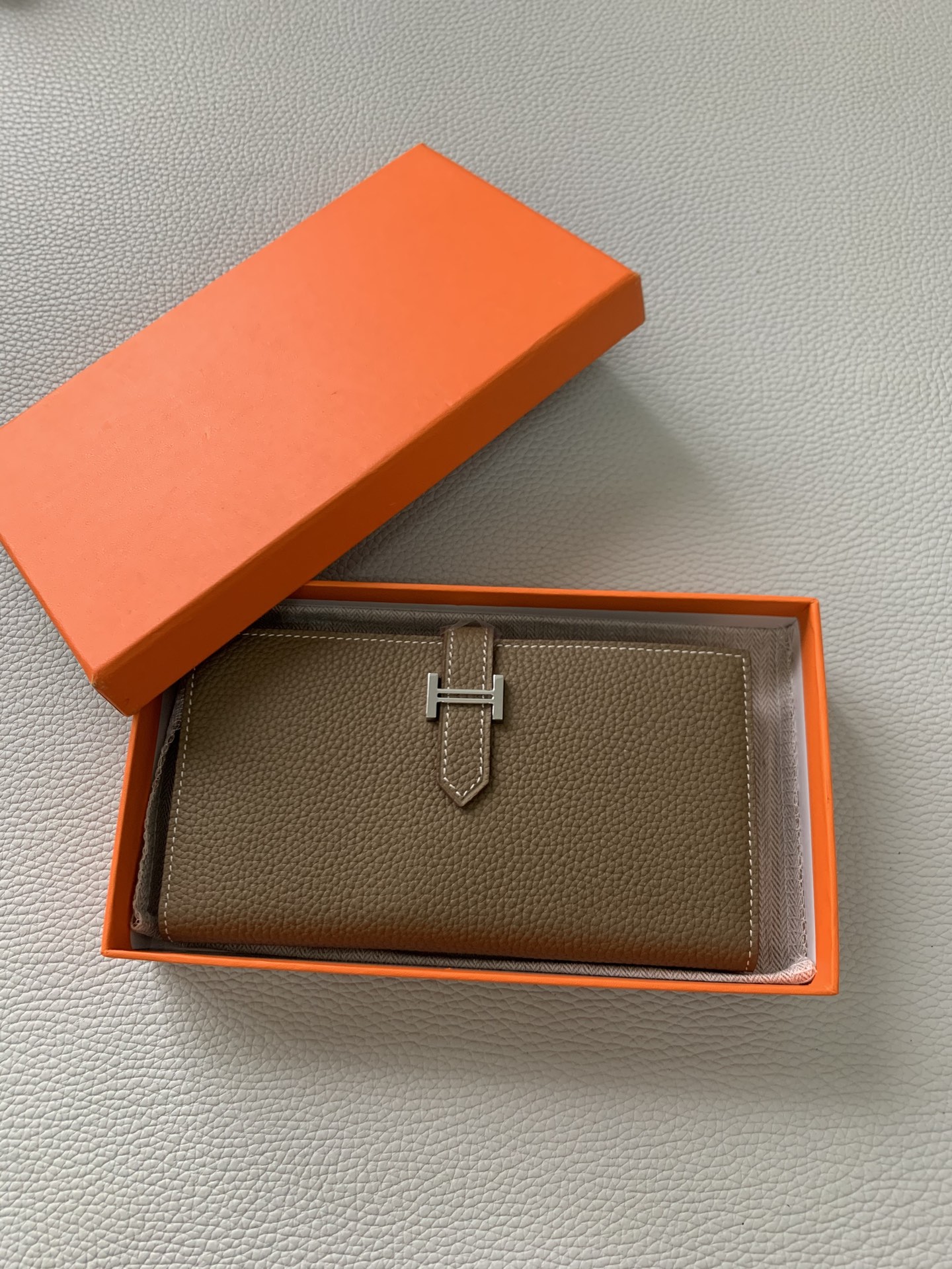 「#4555」 Hermes suit clip bearn wallet togo leather 17.5*9cm