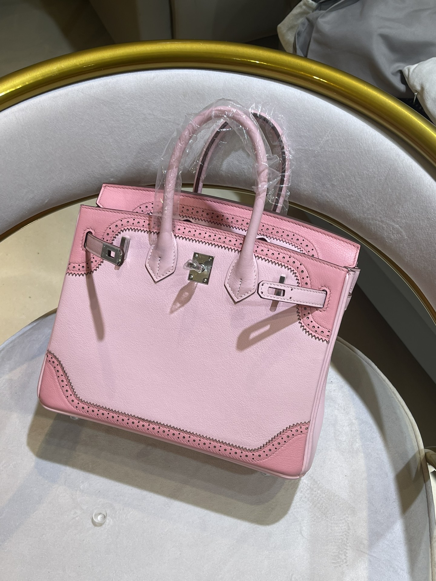 「#4681」Hermes Birkin lace model, epsom leather, silver buckle, hand-sewn wax thread 25cm