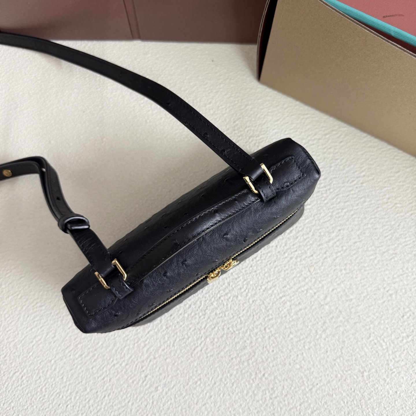 「#7033」Loro pian L19 gold buckle- FAN1034 - 19x6.5x11cm - black ostrich leather