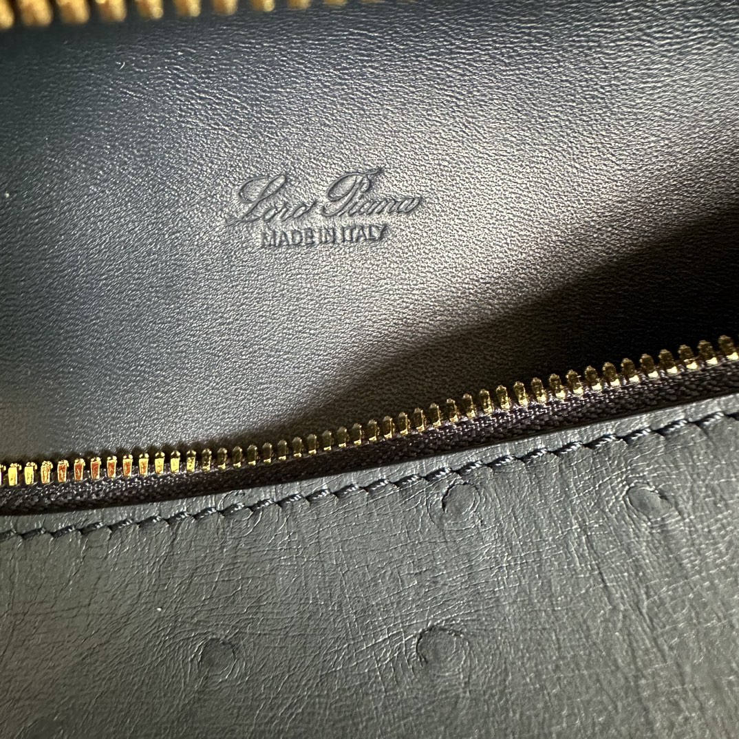 「#7091」Loro pian Extra Pocket L19 gold buckle - FAN1034 - 19x6.5x11cm - midnight blue,Ostrich skin