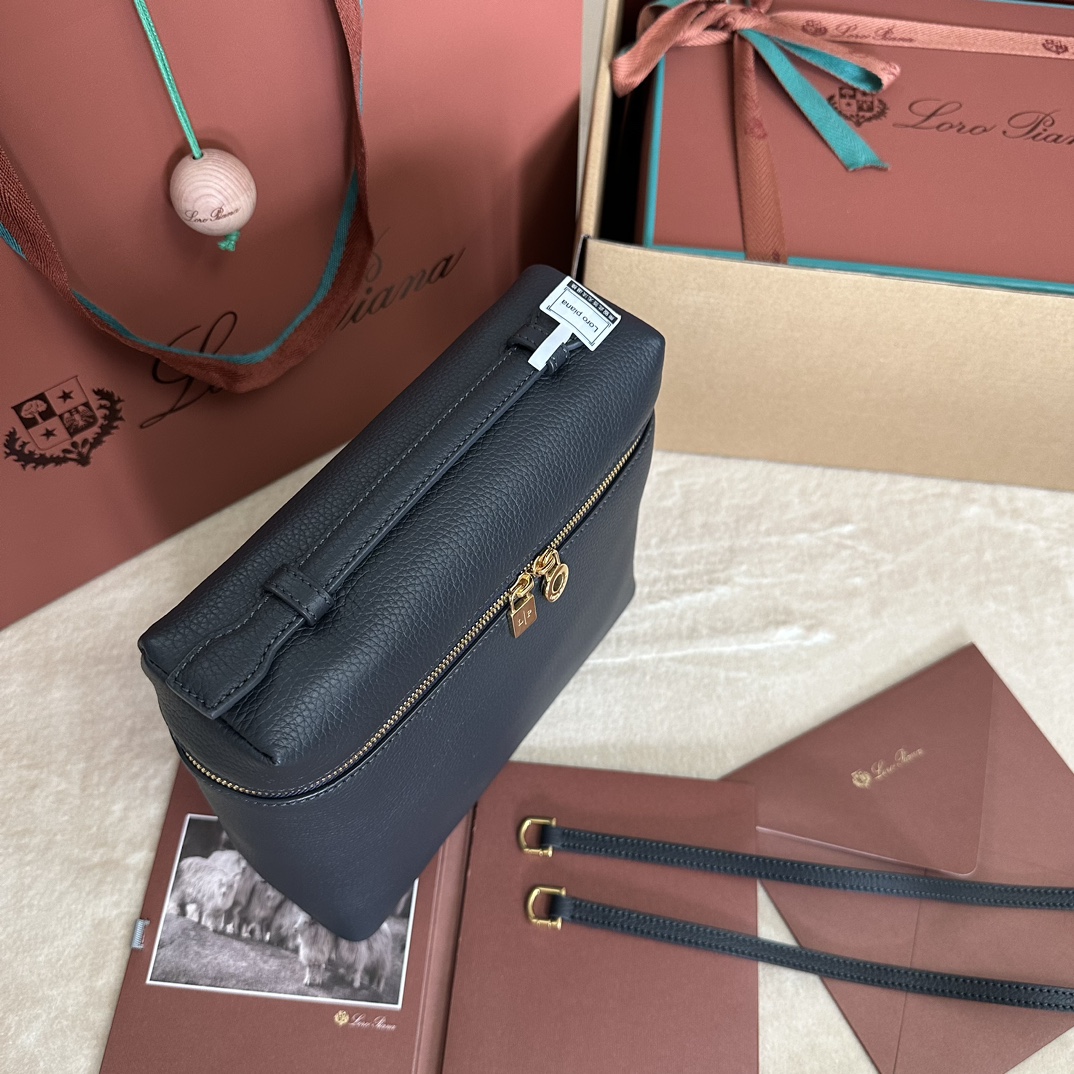 Reviews Over 「#7122」Loro pian Extra Pocket L23.5 gold buckle - FAM6491 - 21✖️23.5✖️8cm - deep sapphire blue