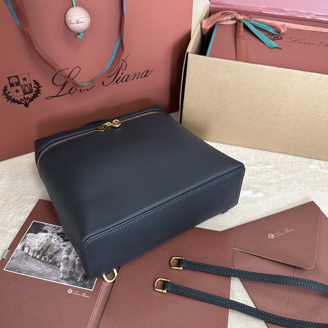 「#7122」Loro pian Extra Pocket L23.5 gold buckle - FAM6491 - 21✖️23.5✖️8cm - deep sapphire blue - 7121 - Loio piana - Body: cow leather Lining: sheep leather