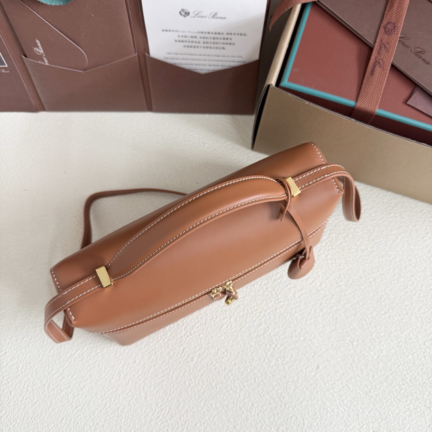「#7150」Loro pian Extra bag L27 gold buckle - FAN4043 - 16cm*27 cm*10cm - warm brown - 7149 - Loio piana -