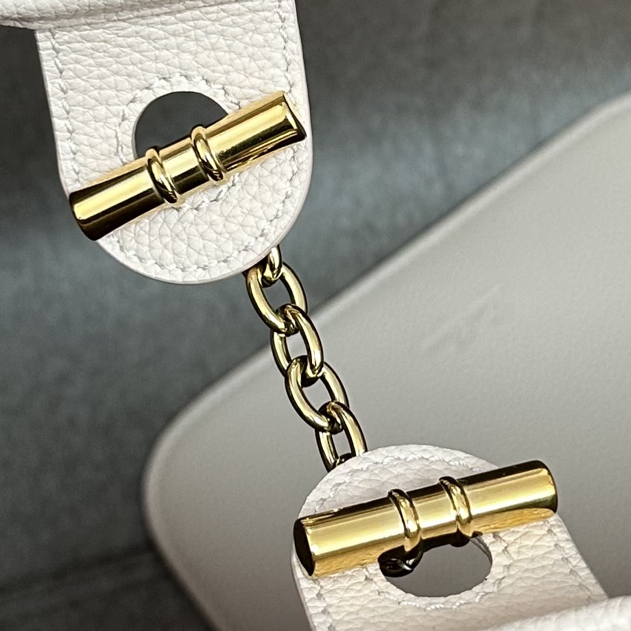 There is no need to say more about the metal of the shoulder strap.The pictures show the obvious difference.In addition, the leatherpart of the shoulder strap in the red circle is sewn in the same way as the original one instead of folding it.